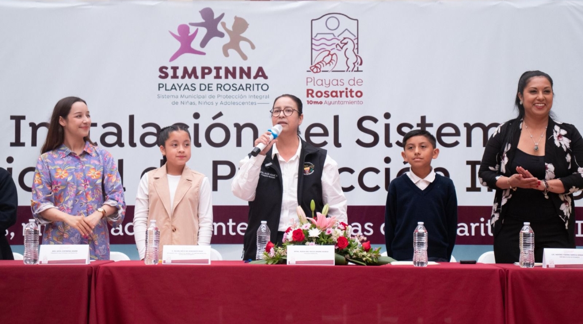 Playas de Rosarito, Baja California, 24 de junio de 2025.– Con un mensaje de compromiso firme hacia el bienestar de la niñez y adolescencia, la presidenta municipal de Playas de Rosarito, Mtra. Rocio Adame, encabezó este martes la instalación del Sistema Municipal de Protección Integral de Niñas, Niños y Adolescentes (SIMPINNA) en la explanada central del Ayuntamiento.