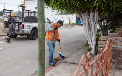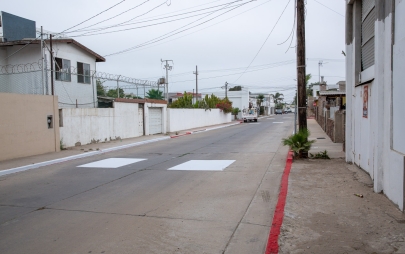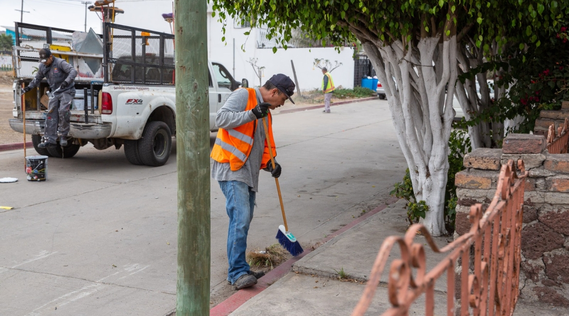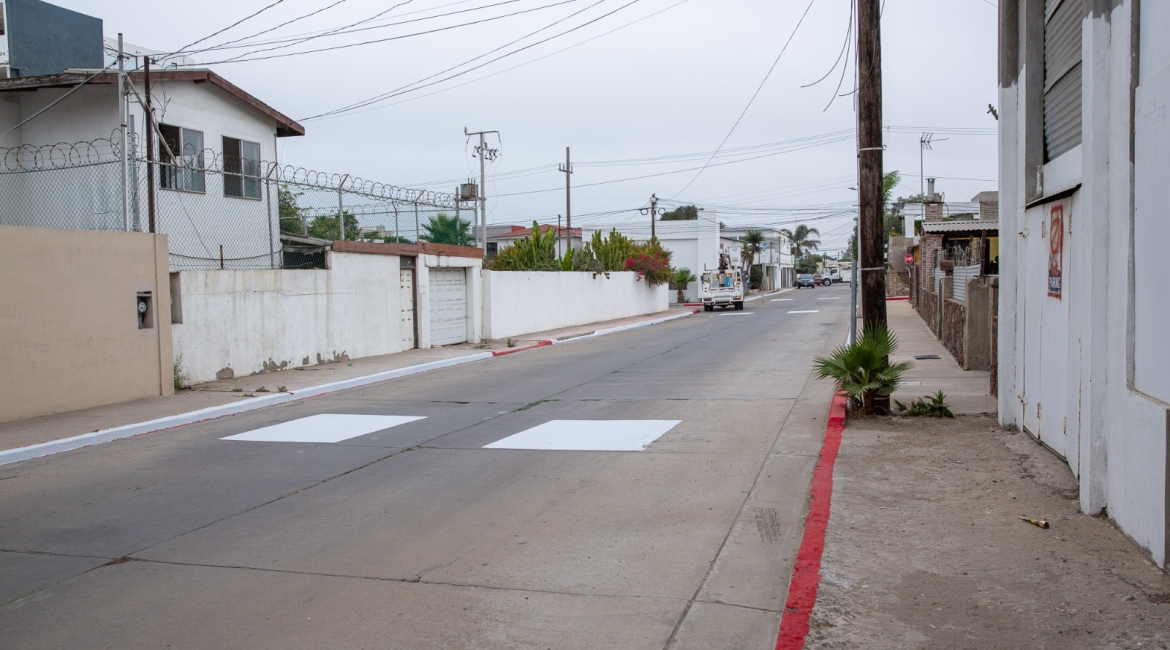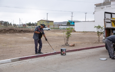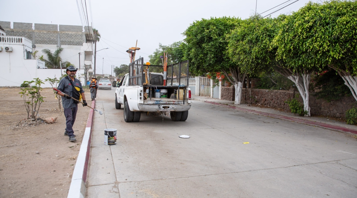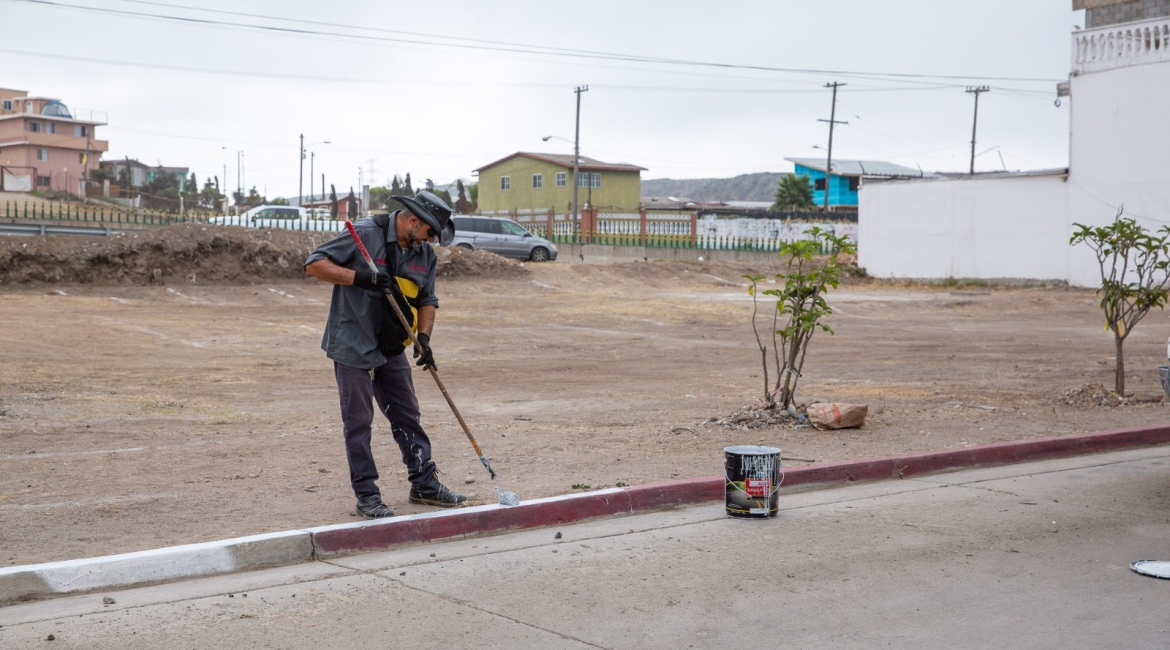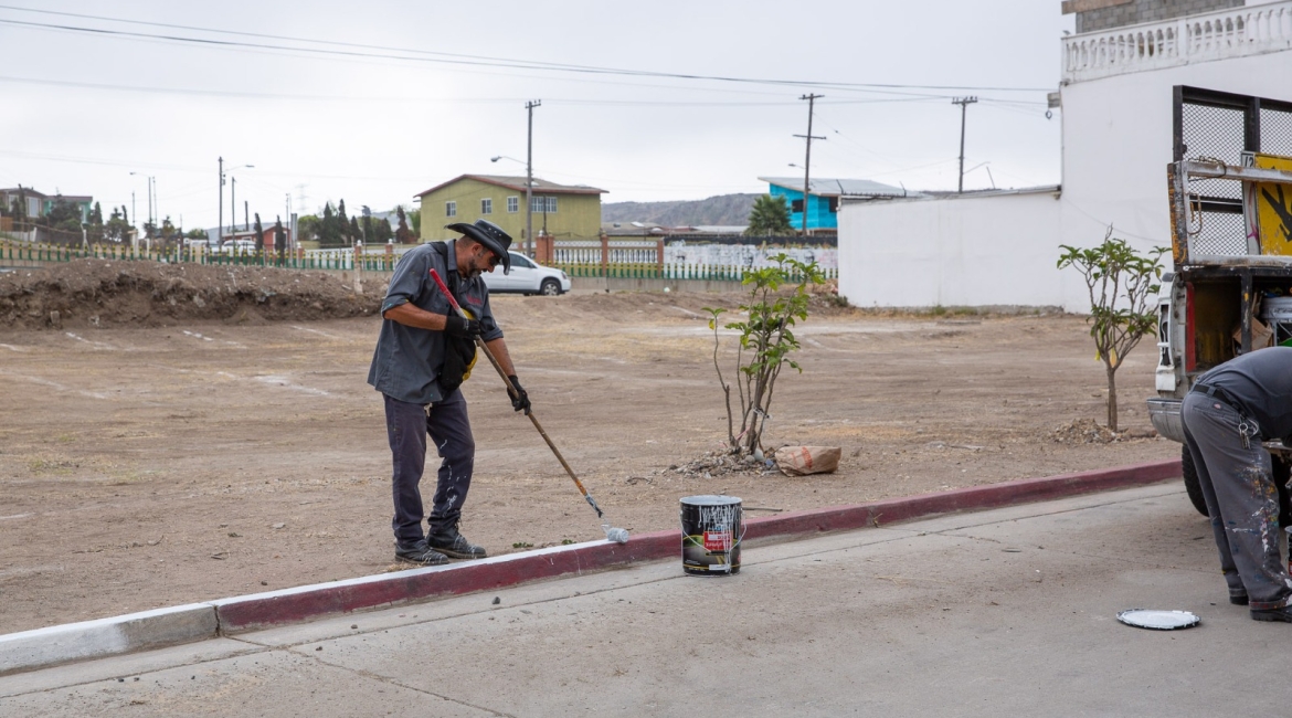 Playas de Rosarito, Baja California, 11 de agosto de 2025.- Desde muy temprano, personal de la Dirección de Servicios Urbanos del Ayuntamiento de Playas de Rosarito, bajo el liderazgo de la presidenta municipal, Mtra. Rocio Adame, inició labores de pintado de banquetas en color blanco sobre la calle Mar Mediterráneo, en la Zona Centro, con el objetivo de permitir que residentes y visitantes puedan estacionar sus vehículos de manera segura y ordenada.