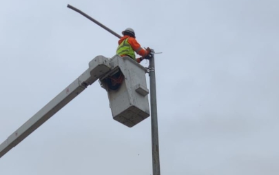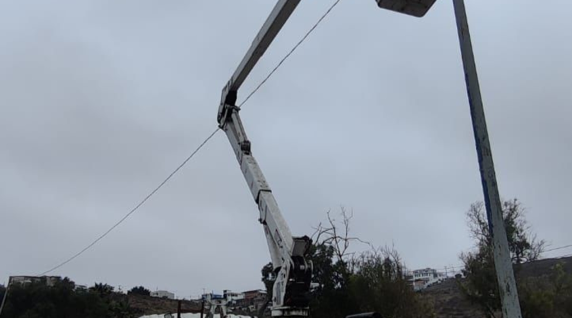 En atención a las peticiones ciudadanas recibidas mediante la línea 073 y como resultado de los recorridos permanentes que el personal realiza por la ciudad, se llevó a cabo la instalación de postes, cableado y lámparas en el Cañón Rosarito, lo que permitirá ampliar la cobertura de alumbrado público en beneficio de los vecinos y de quienes transitan por la zona.