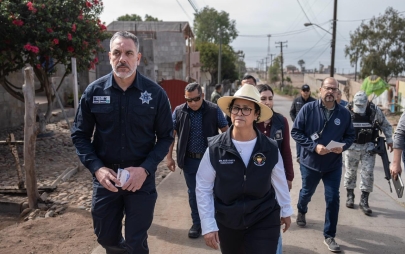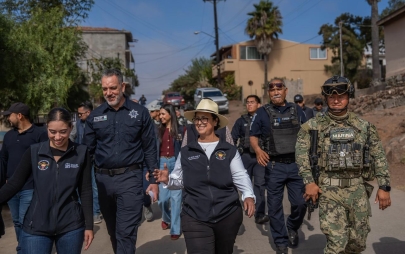 Playas de Rosarito, B.C., a 8 de noviembre de 2025.-Con el compromiso de fortalecer la seguridad en cada una de las comunidades, la presidenta municipal de Playas de Rosarito, Rocío Adame, encabezó una Jornada de Seguridad Histórica en la Colonia Venustiano Carranza, donde por primera vez se reunieron autoridades de los tres órdenes de gobierno para atender directamente a vecinas y vecinos.