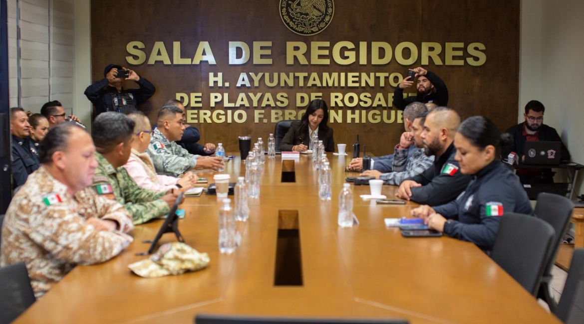 Playas de Rosarito, B.C., a 14 de noviembre de 2025.-Con el compromiso de dar continuidad a las estrategias de seguridad impulsadas por la alcaldesa Rocío Adame, este día se llevó a cabo la Mesa de Seguridad de Playas de Rosarito, en la cual participaron corporaciones de los tres órdenes de gobierno para evaluar los resultados operativos de la última semana y reforzar las acciones en favor de la tranquilidad de las familias rosaritenses.