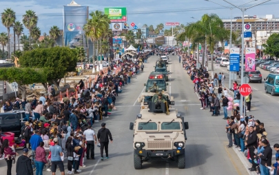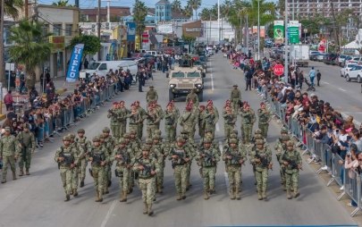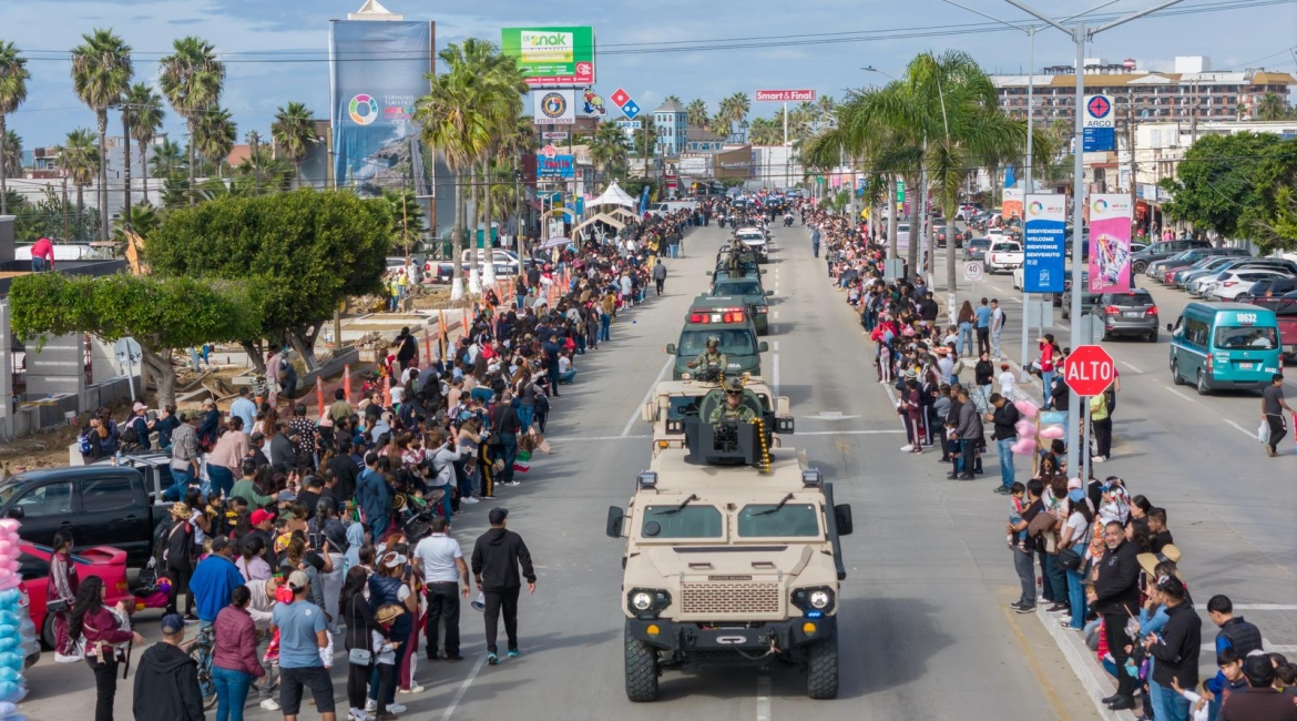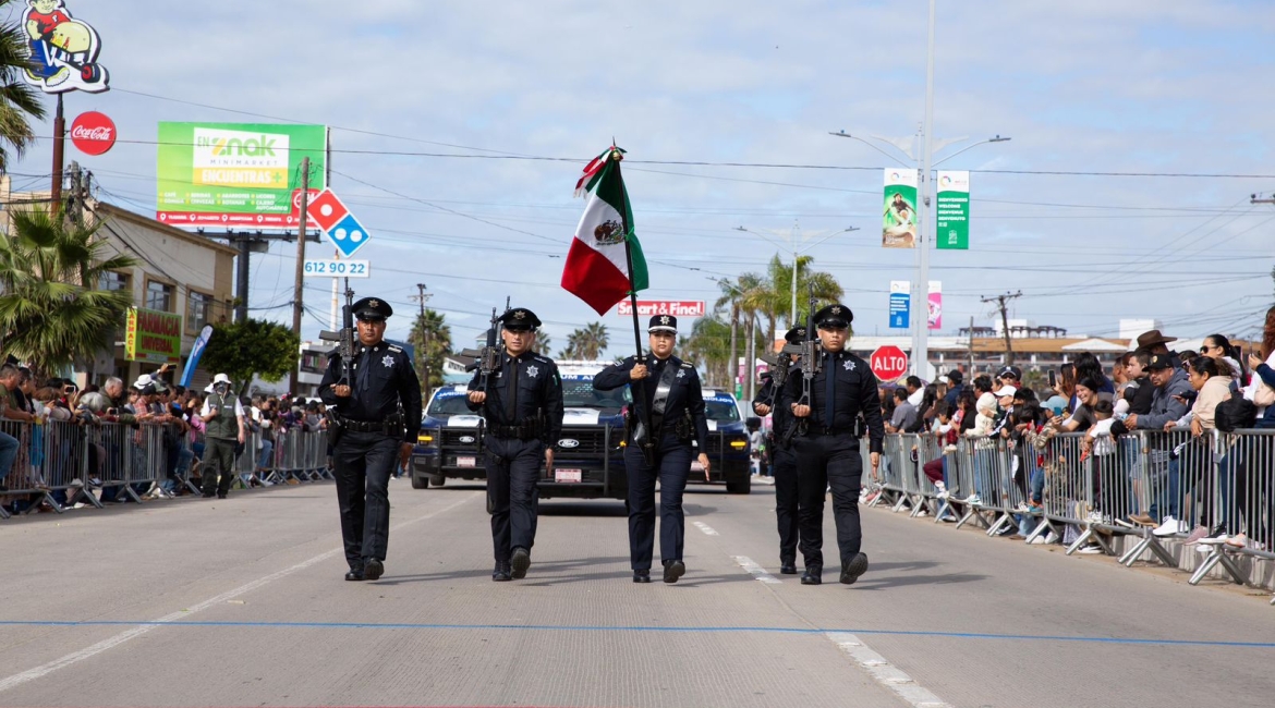 El recorrido incluyó la participación de la Guardia Nacional, la Secretaría de Seguridad Ciudadana, la Policía Juvenil, Protección Civil y Bomberos, así como la Secretaría de Movilidad y Transporte, quienes realizaron demostraciones cívicas y deportivas que fortalecieron la coordinación institucional. A estos se sumaron grupos de la tercera edad, los grupos paramunicipales como Boinas Negras, carros Oldies, autos 4x4 y la Asociación de Camiones de Playas de Rosarito, que añadieron diversidad y tradición al desfile.