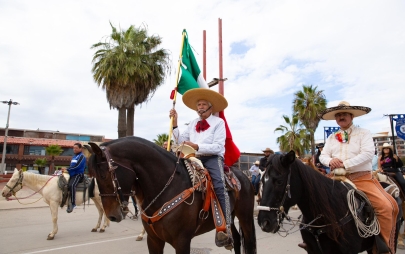 La parte final del recorrido estuvo marcada por la presencia de vaqueras y vaqueros de Playas de Rosarito, el grupo de charros del municipio y la caballería, que dieron un cierre representativo de las raíces culturales de la región. Finalmente, la Dirección de Servicios Urbanos clausuró el desfile mostrando el trabajo coordinado de las áreas municipales.