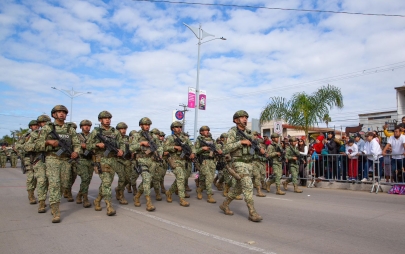 En su mensaje, la presidenta municipal reconoció el compromiso de la comunidad con la preservación de los valores cívicos y la identidad nacional. “Encabezar este desfile es un honor porque refleja el espíritu de unión que caracteriza a Rosarito. Ver a nuestras niñas, niños y jóvenes participar con tanto entusiasmo nos motiva a seguir fortaleciendo nuestras tradiciones. Agradezco profundamente a cada institución, familia y grupo comunitario que se sumó a este homenaje a nuestra historia”, señaló Adame.