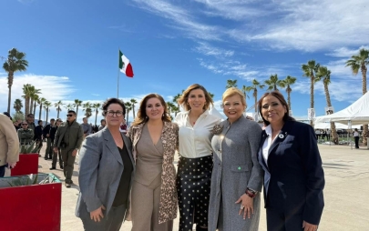 Playas de Rosarito, B.C., a 27 de noviembre de 2025.-Con el objetivo de reforzar la seguridad pública, mejorar la coordinación financiera entre municipios y fortalecer la profesionalización policial en Baja California, la presidenta municipal Rocío Adame participó este día en una agenda de actividades junto a la gobernadora del Estado, Marina del Pilar Ávila Olmeda, y autoridades municipales y estatales.