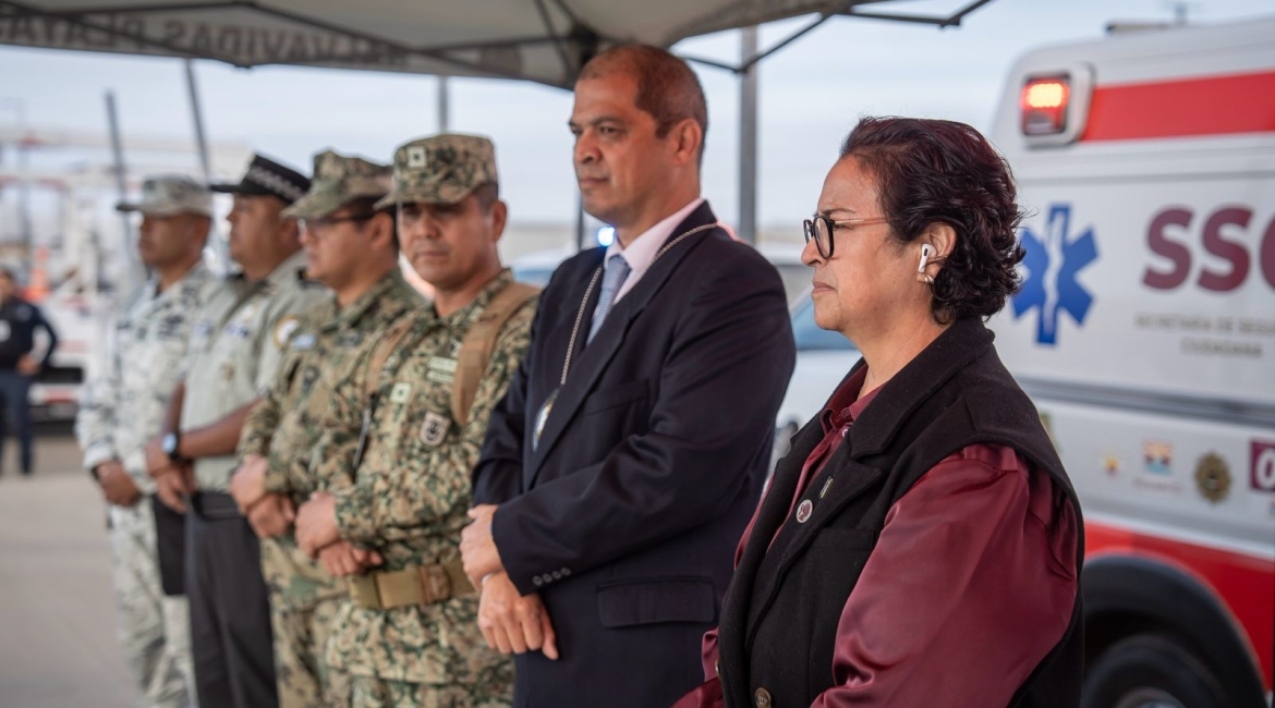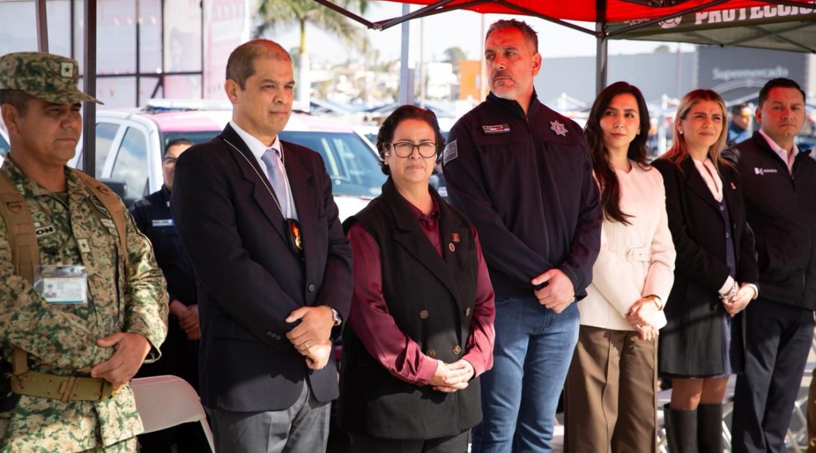 Playas de Rosarito, B.C., a 3 de diciembre de 2025.-Con el compromiso de reforzar la seguridad durante la temporada decembrina y garantizar el bienestar de residentes y visitantes, la presidenta municipal de Playas de Rosarito, Rocío Adame, encabezó esta mañana el arranque oficial del Operativo “Diciembre Seguro”, como parte del Plan Integral de Seguridad Navideña impulsado por el Gobierno de Baja California.