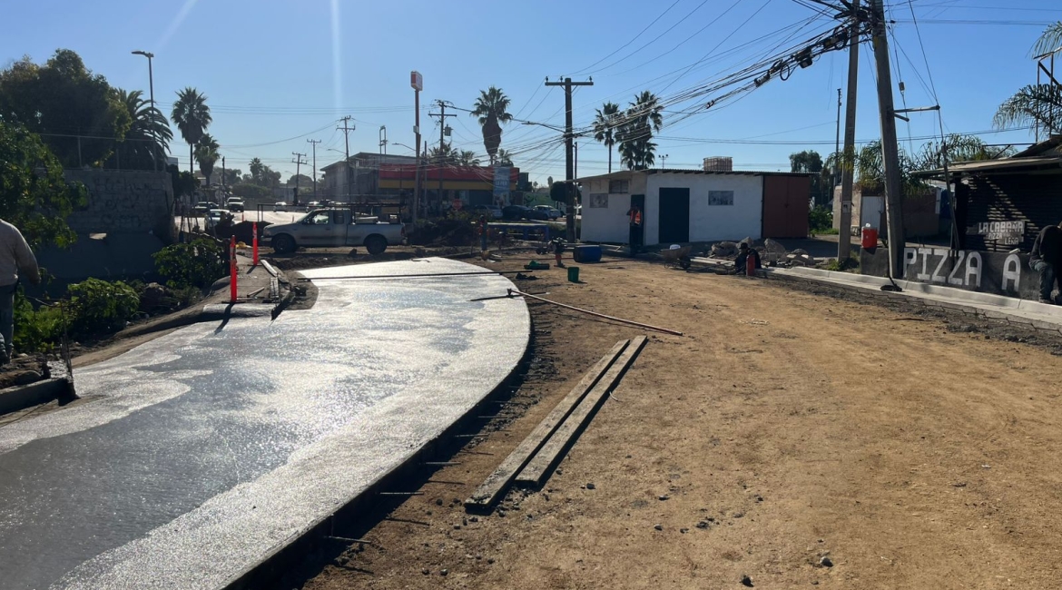 Los trabajos abarcan el tramo que va de la calle Rosarito hasta la zona de la Farmacia Más Barata, donde se continúa con mejoras estructurales y preparación de base para la nueva superficie de rodamiento.