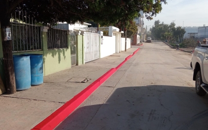 La calle Mexicali operará en doble sentido de circulación, por lo que de manera temporal se pintaron las banquetas de color rojo, con el objetivo de evitar el estacionamiento de vehículos y garantizar una circulación fluida y segura. Asimismo, se exhorta a los vehículos de carga pesada o de grandes dimensiones a abstenerse de transitar por esta vialidad, ya que podrían generar congestionamientos.