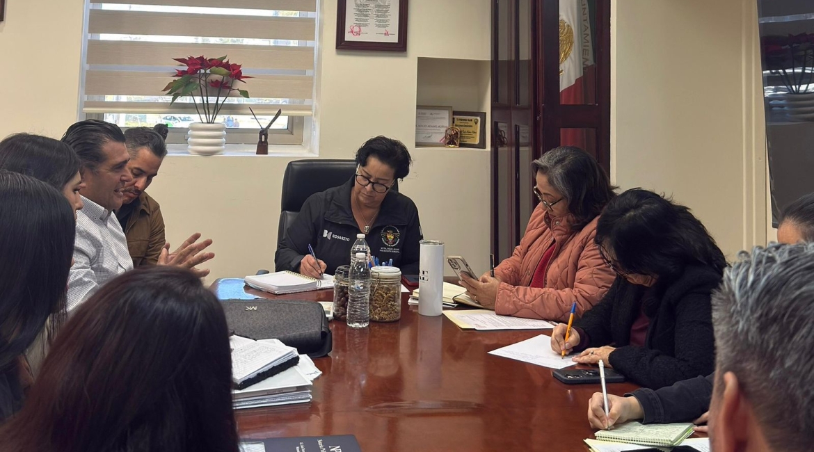 Playas de Rosarito, B.C., 12 de enero de 2026.-Con el objetivo de fortalecer la coordinación interinstitucional y dar certeza jurídica al desarrollo urbano del municipio, el 10° Ayuntamiento de Playas de Rosarito, encabezado por la presidenta municipal, Rocío Adame, sostuvo una reunión de trabajo con representantes del Ejido Primo Tapia y diversas dependencias municipales, a fin de dar seguimiento a temas clave relacionados con la regularización de predios, trámites administrativos y dictámenes de impacto urbano.