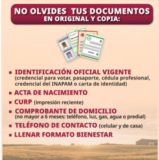 Solo necesitas tu identificación oficial, CURP, acta de nacimiento, comprobante de domicilio, teléfono y el formato de la Secretaría de Bienestar.