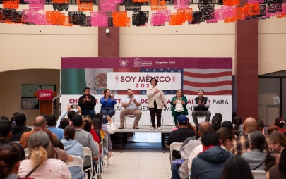 La presidenta municipal Rocío Adame encabezó la ceremonia de entrega de constancias y actas de nacimiento de doble nacionalidad derivadas de la...