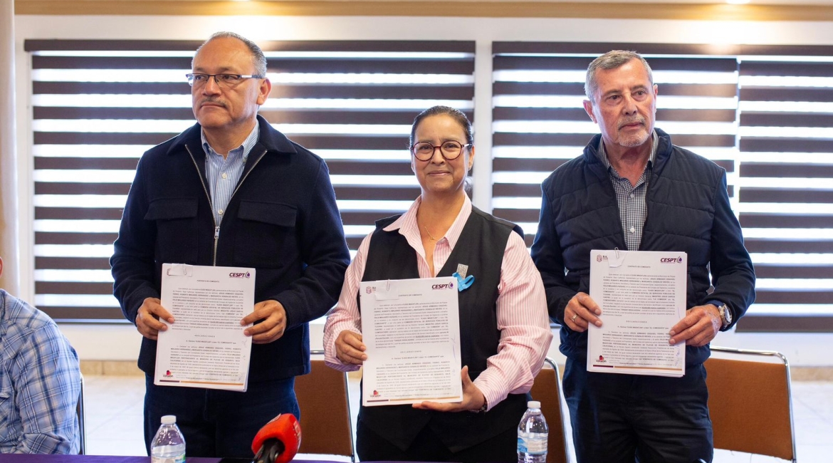 Este importante acto se realizó este miércoles 02 de julio, en las oficinas del Ejido Mazatlán, y contó con la participación del Comisariado Ejidal, Jesús Armando Esquivel Fierro, el Director General de la CESPT, Mtro. Jesús García Castro, y la Presidenta Municipal, Mtra. Rocío Adame, quien suscribió el contrato como testigo de honor.