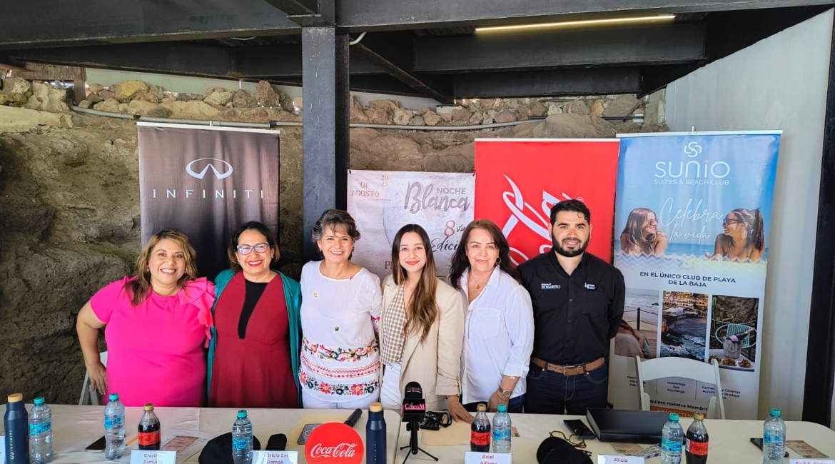 En una conferencia de prensa, dieron los detalles: Patricia San Román, Productora y Directora de Noche Blanca BC; Aziel Adame, Presidenta del Patronato DIF Rosarito; Alicia Millanes, Directora Logística de Noche Blanca BC; Graciela Zamudio, Directora General de Alma Migrante; y Martha Domínguez, Directora Comercial de Castillos del Mar. Saul Álvarez, Director General de COTUCO de Playas de Rosarito.