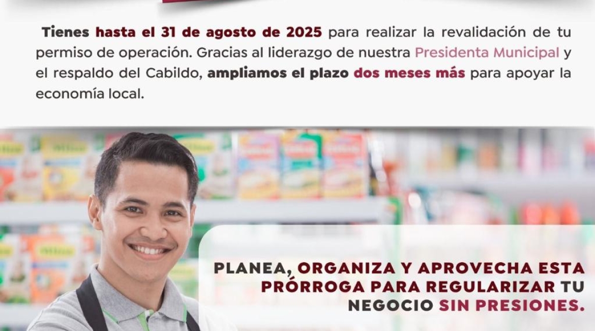 El Gobierno Municipal reitera la importancia de que todos los negocios aprovechen esta extensión del plazo, ya que con ello se fomenta un entorno propicio para el desarrollo sostenible del sector productivo local. Asimismo, se fortalece la recaudación municipal, lo que permitirá seguir invirtiendo en obras y servicios en beneficio de toda la comunidad.