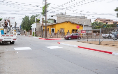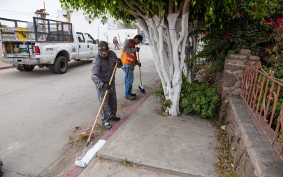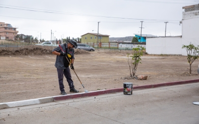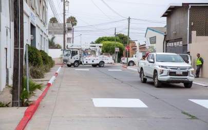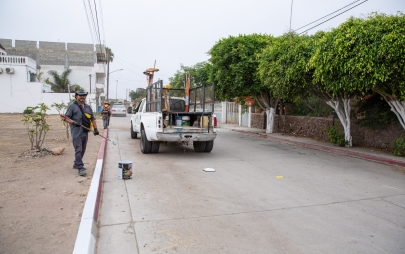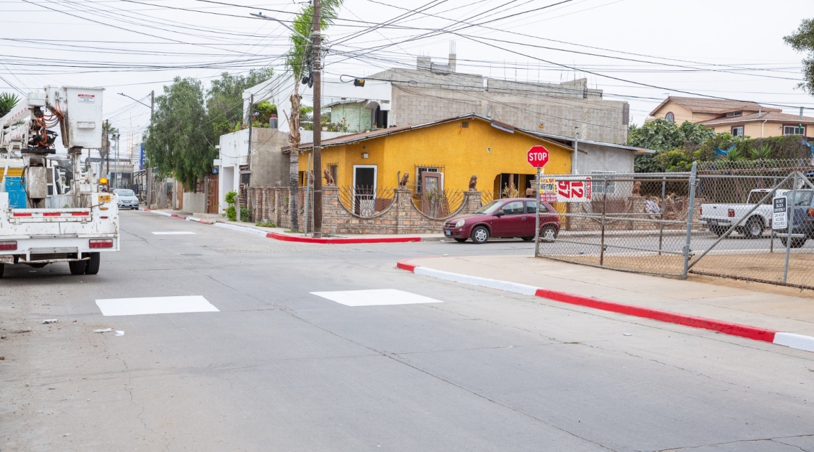 Playas de Rosarito, Baja California, 11 de agosto de 2025.- Desde muy temprano, personal de la Dirección de Servicios Urbanos del Ayuntamiento de Playas de Rosarito, bajo el liderazgo de la presidenta municipal, Mtra. Rocio Adame, inició labores de pintado de banquetas en color blanco sobre la calle Mar Mediterráneo, en la Zona Centro, con el objetivo de permitir que residentes y visitantes puedan estacionar sus vehículos de manera segura y ordenada.