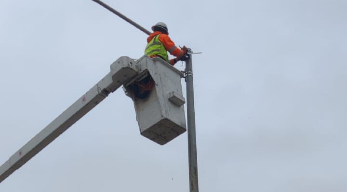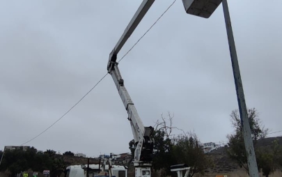 En atención a las peticiones ciudadanas recibidas mediante la línea 073 y como resultado de los recorridos permanentes que el personal realiza por la ciudad, se llevó a cabo la instalación de postes, cableado y lámparas en el Cañón Rosarito, lo que permitirá ampliar la cobertura de alumbrado público en beneficio de los vecinos y de quienes transitan por la zona.