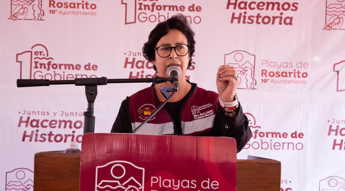 Playas de Rosarito, B.C., 08 de octubre de 2025.-Con el firme compromiso de mantener un gobierno transparente, cercano y honesto, la presidenta municipal de Playas de Rosarito, Rocío Adame Muñoz, encabezó un informe de resultados y una jornada de entrega de apoyos en el Centro Comunitario Tonatzin, ubicado en la colonia Constitución.