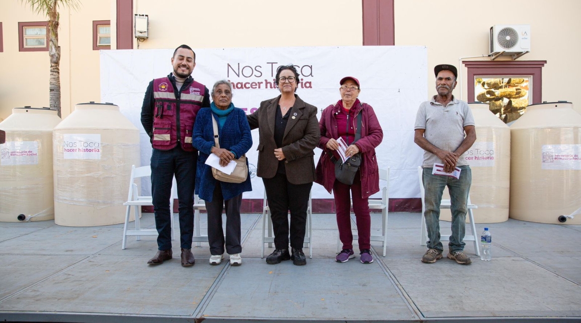 Como parte del evento, se realizó la entrega simbólica de tinacos a representantes de las comunidades, quienes expresaron su agradecimiento por este apoyo que, aseguraron, representa un gran alivio para su vida diaria. “Gracias por estas oportunidades tan grandes y por el esfuerzo de la administración”, dijeron las y los beneficiarios.