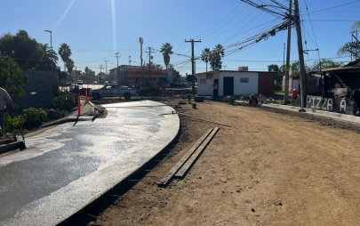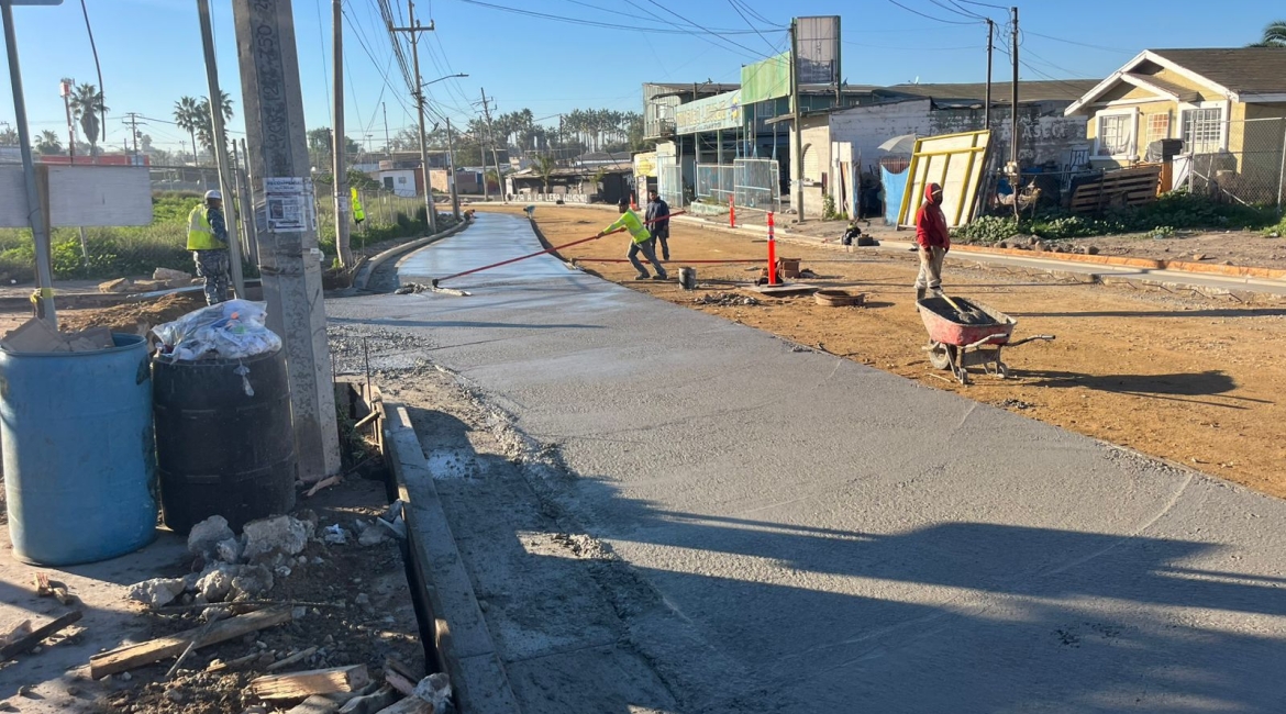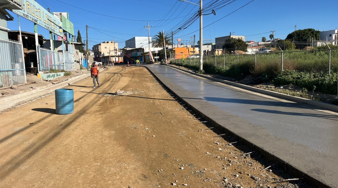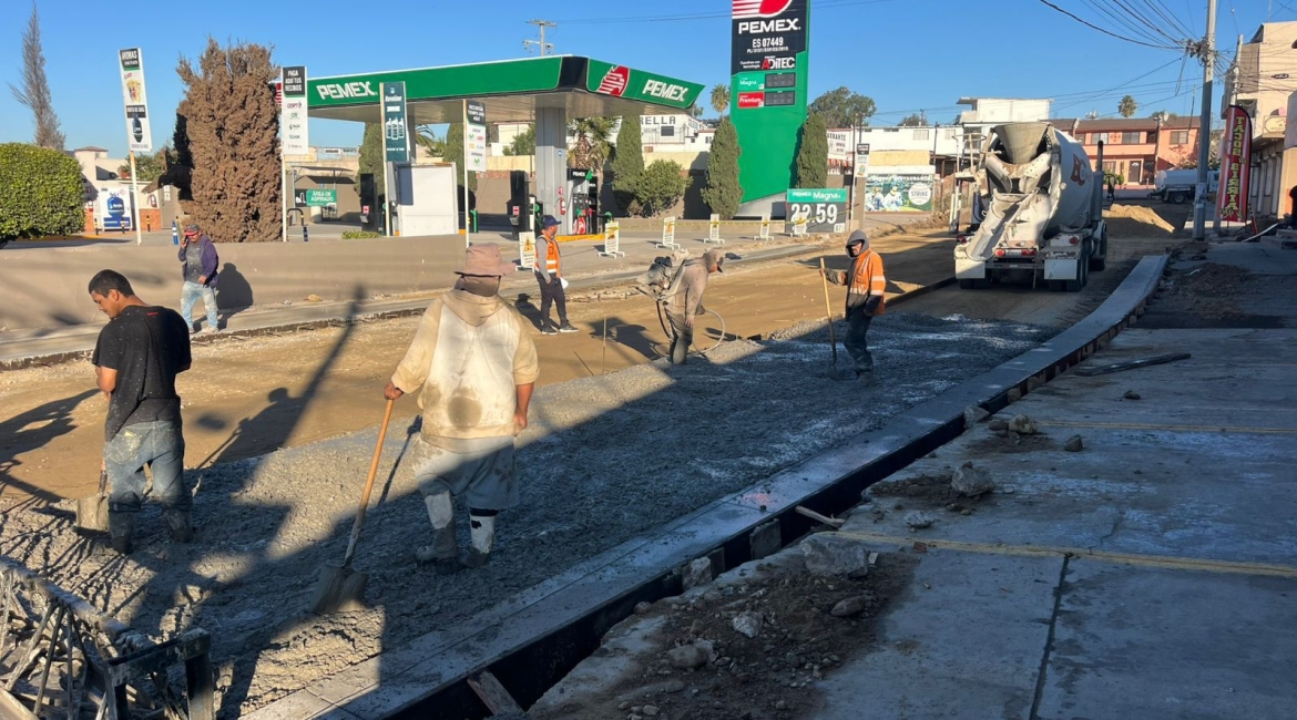 Los trabajos abarcan el tramo que va de la calle Rosarito hasta la zona de la Farmacia Más Barata, donde se continúa con mejoras estructurales y preparación de base para la nueva superficie de rodamiento.