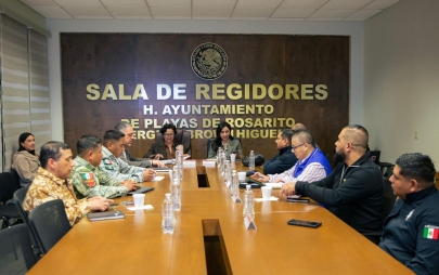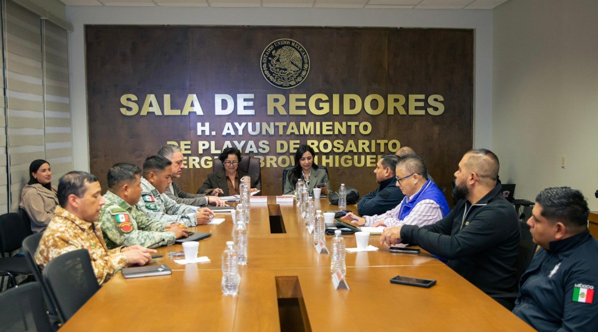Playas de Rosarito, B.C., a 12 de diciembre de 2025.-Con el objetivo de seguir reforzando las estrategias de seguridad y garantizar la tranquilidad de las familias rosaritenses, la presidenta municipal, Rocío Adame, encabezó la Mesa de Seguridad de Playas de Rosarito, en la que se revisaron los avances operativos de las últimas horas y los esfuerzos conjuntos de las corporaciones que actúan en el municipio.