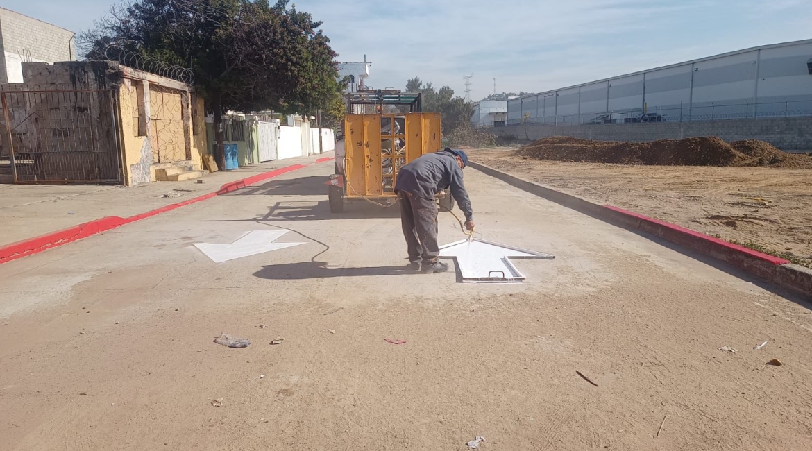 La calle Mexicali operará en doble sentido de circulación, por lo que de manera temporal se pintaron las banquetas de color rojo, con el objetivo de evitar el estacionamiento de vehículos y garantizar una circulación fluida y segura. Asimismo, se exhorta a los vehículos de carga pesada o de grandes dimensiones a abstenerse de transitar por esta vialidad, ya que podrían generar congestionamientos.