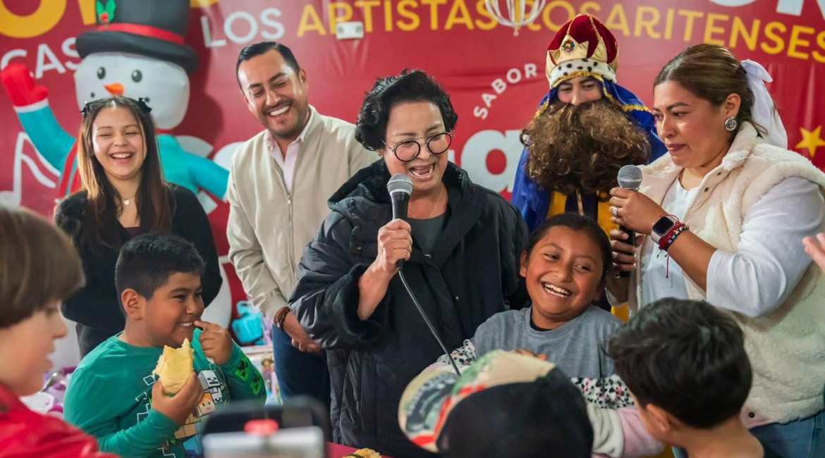 Como parte de la celebración, se realizó la tradicional partida de la Rosca de Reyes, en la que participaron la alcaldesa, niñas y niños asistentes, además de la presencia de Los Tres Reyes Magos, quienes convivieron con las familias y llenaron de alegría a las y los menores.