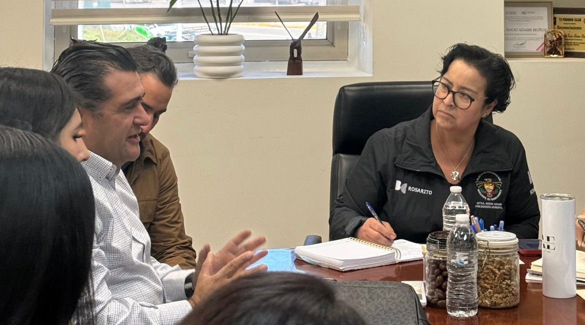 Playas de Rosarito, B.C., 12 de enero de 2026.-Con el objetivo de fortalecer la coordinación interinstitucional y dar certeza jurídica al desarrollo urbano del municipio, el 10° Ayuntamiento de Playas de Rosarito, encabezado por la presidenta municipal, Rocío Adame, sostuvo una reunión de trabajo con representantes del Ejido Primo Tapia y diversas dependencias municipales, a fin de dar seguimiento a temas clave relacionados con la regularización de predios, trámites administrativos y dictámenes de impacto urbano.