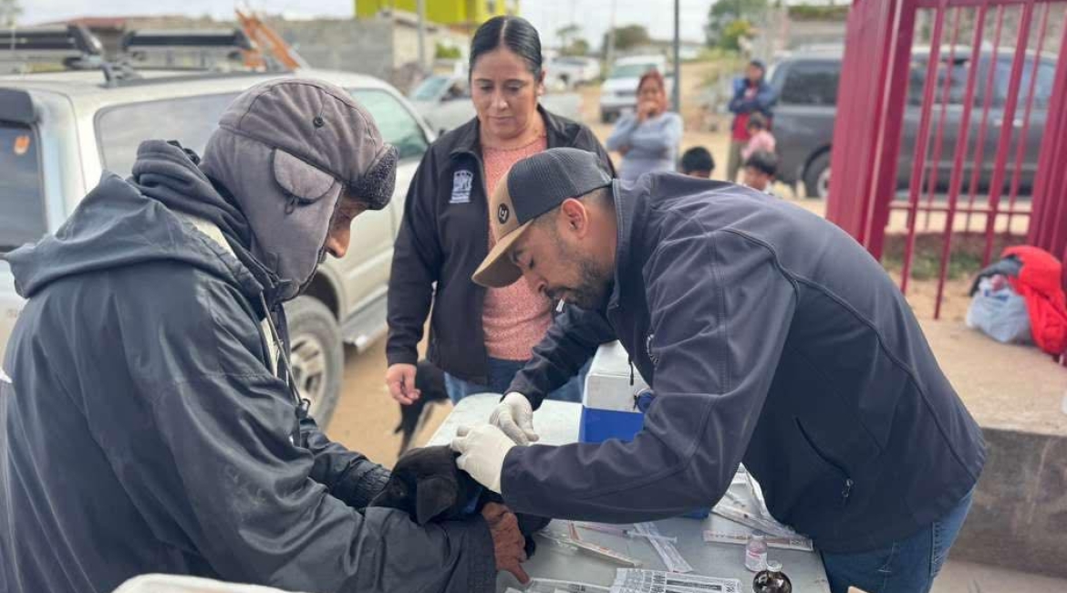 Playas de Rosarito, B.C., 10 de febrero de 2026.- El 10° Ayuntamiento de Playas de Rosarito, informa que se llevó a cabo con éxito la jornada de vacunación, desparasitación y aplicación contra pulgas y garrapatas en la Primaria de Volcanes, beneficiando a decenas de perritos y gatitos de la comunidad.