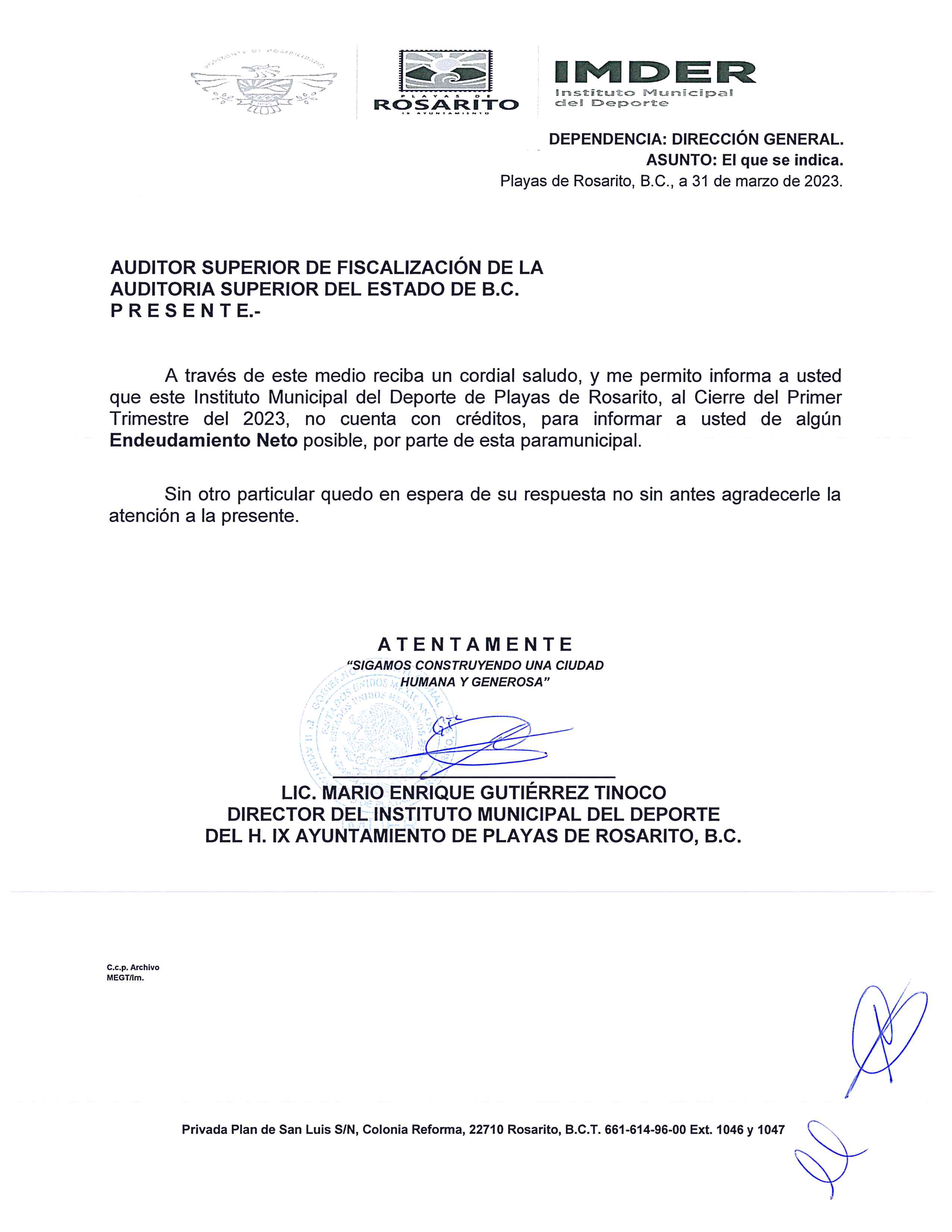 6.- Endeudamiento Neto IMDER1ER2023