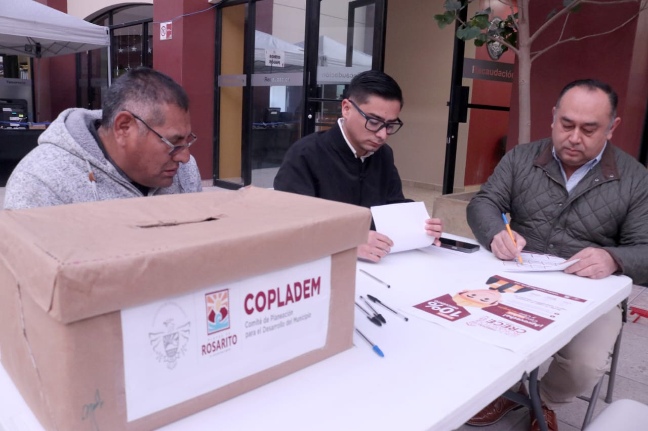En este sentido, el tesorero municipal, Manuel Zermeño Chávez, destacó que entre las propuestas del PP 2024, se encuentran: construcción de sanitarios en la secundaria Abraham Lincoln No.32, remodelación del parque Rancho Chula Vista, pavimentación con concreto hidráulico de la calle Quintana Roo, construcción de barda perimetral en la primaria Benemérito de las Américas en la Delegación Primo Tapia.