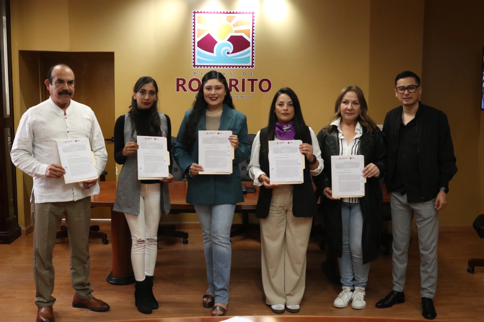 Playas de Rosarito, B.C. 30 de abril de 2024.- Con el objetivo de desarrollar e implementar estrategias para erradicar todas las formas de violencia contra las mujeres; la presidencia, el Instituto Municipal de la Mujer (Immujer) y la Secretaría de Seguridad Ciudadana (SSC) firmaron convenio de colaboración con el Colectivo Defensora de los Derechos Humanos de las Mujeres, Niños, Niñas y Adolescentes víctimas de Violencia Vicaria (Cesodi)