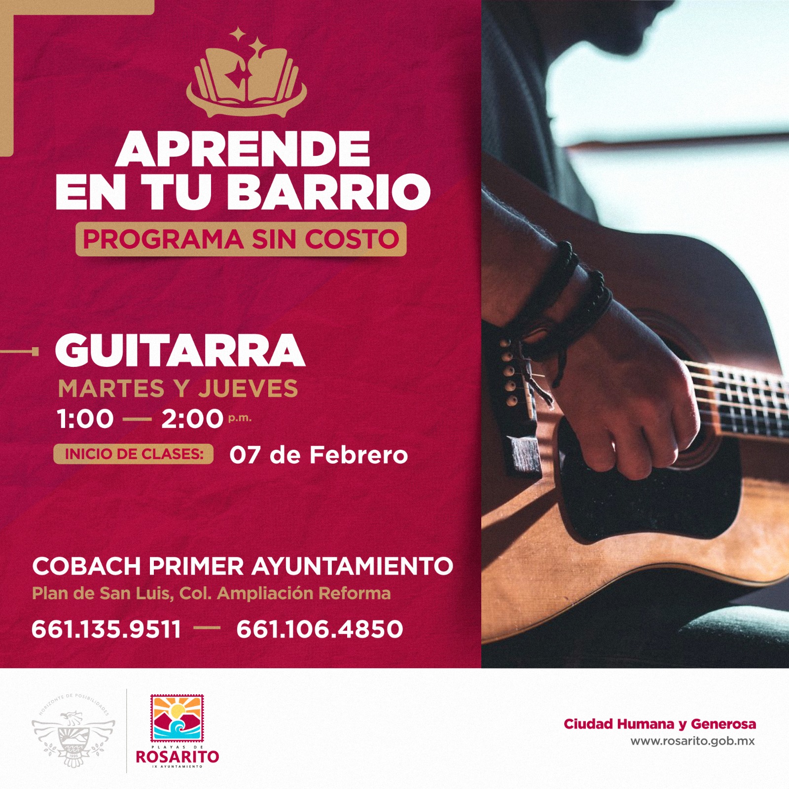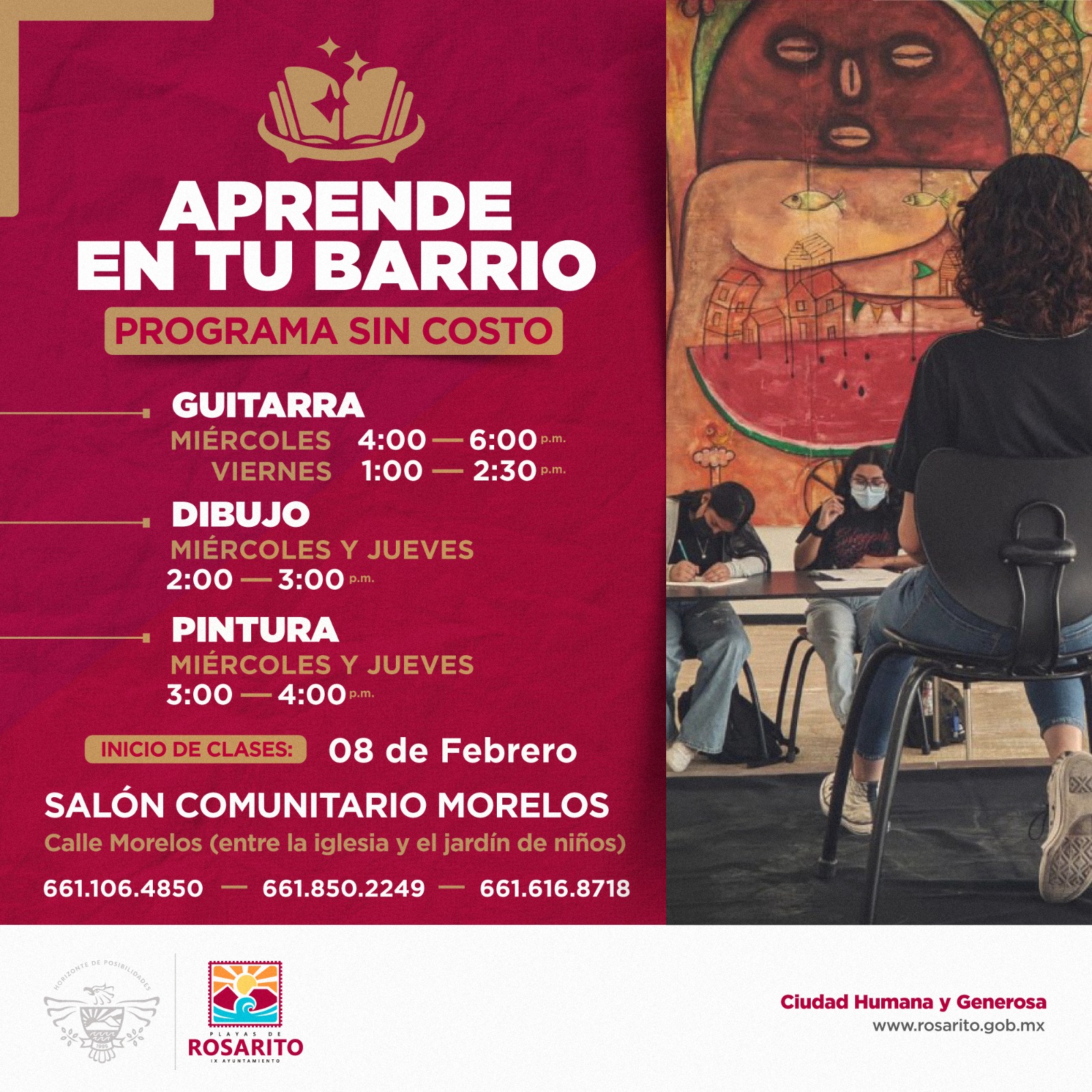En el Centro Comunitario Morelos, se impartirán clases de guitarra, dibujo y pintura, para niñas y niños a partir de los 8 -para guitarra- y 10 años respectivamente; en este punto las actividades se llevarán a cabo los días miércoles, jueves y viernes. Para conocer los horarios e inscribirse, pueden comunicarse al teléfono 661 106 48 50.