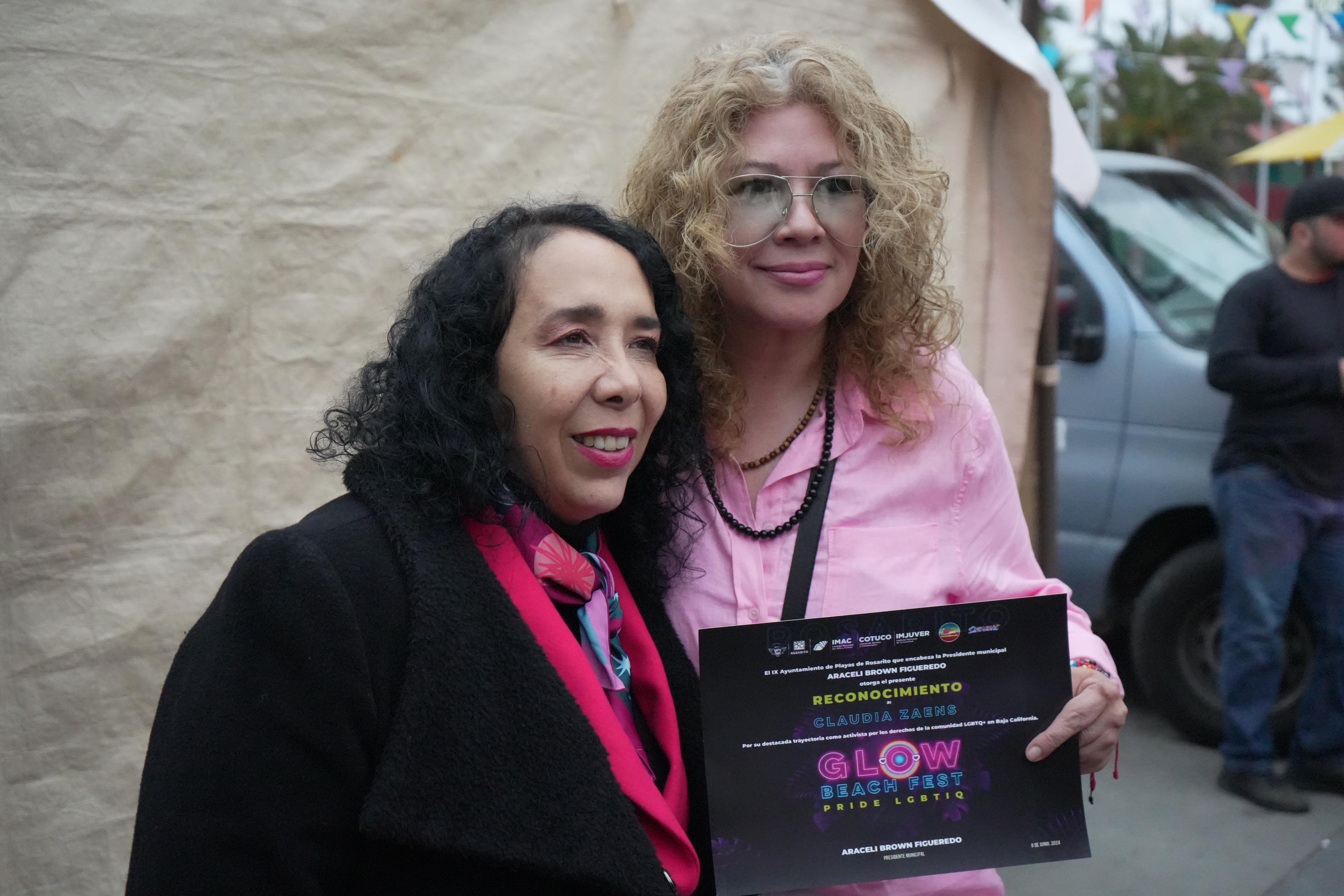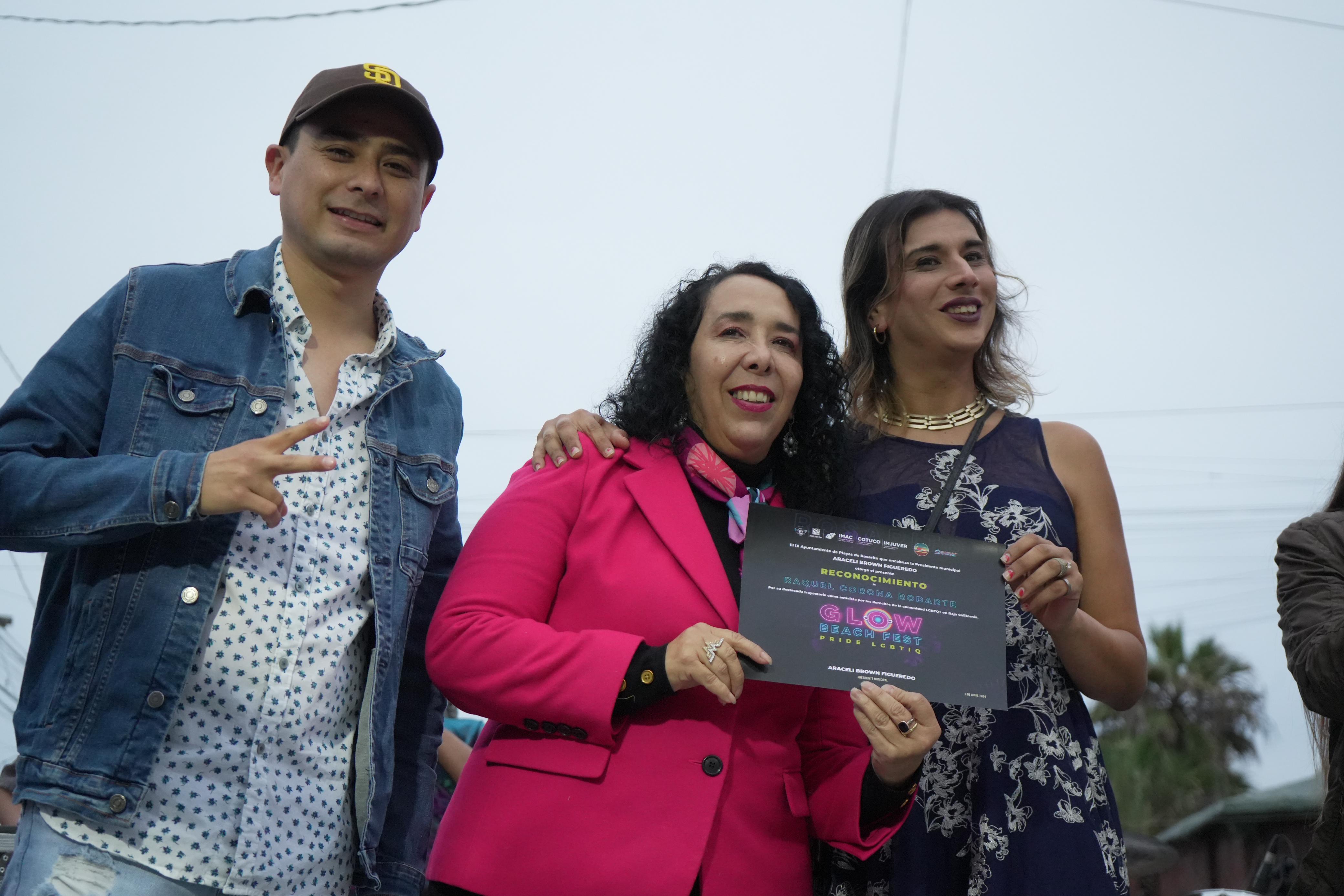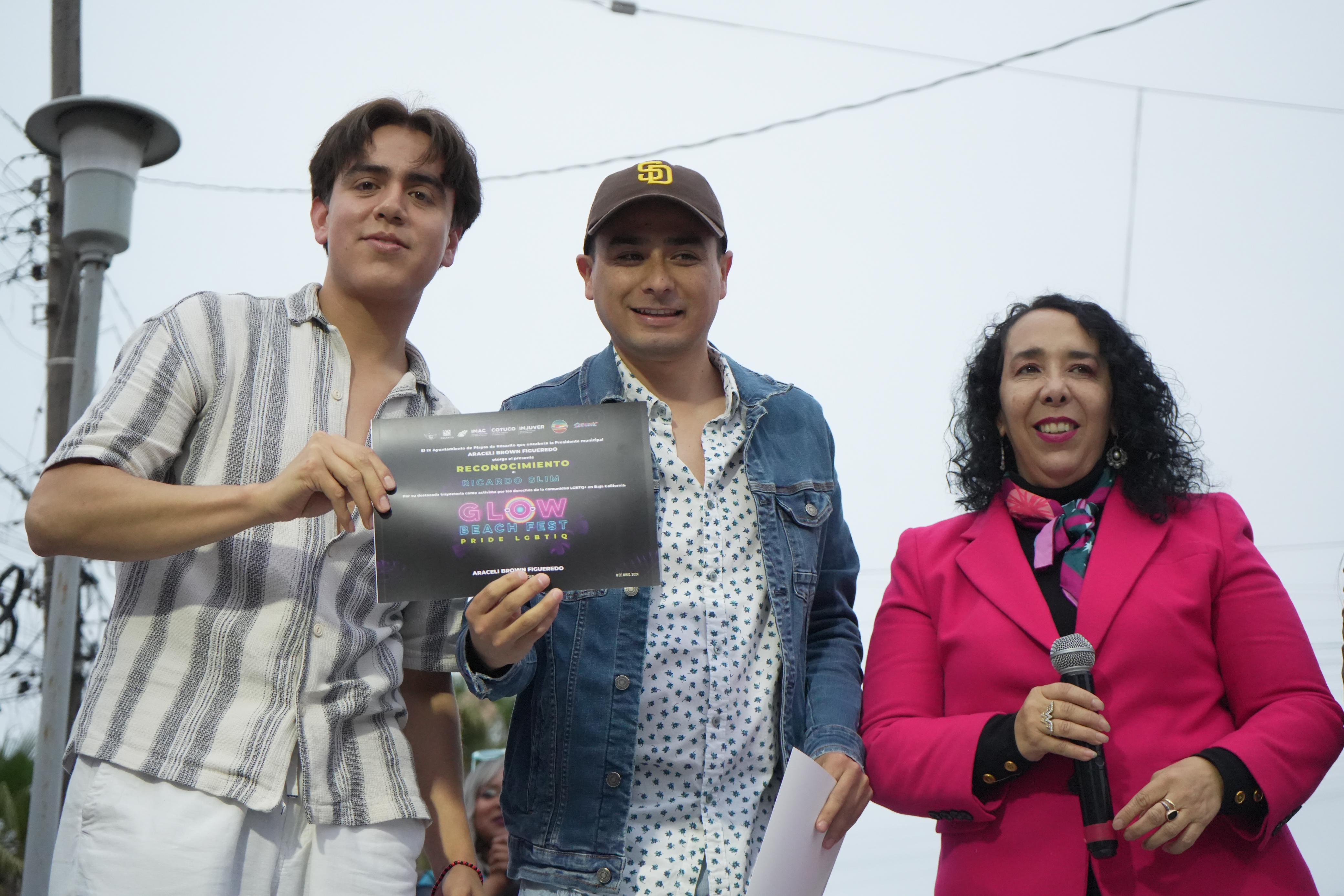 Playas de Rosarito, B.C. 10 de junio de 2024.- La presidente municipal reconoció a activistas de Baja California por su aportación a una sociedad justa e inclusiva, durante el "Glow Beach Fest Pride LGBTIQ", que se llevó a cabo en la Zona Rosa-Rito.
