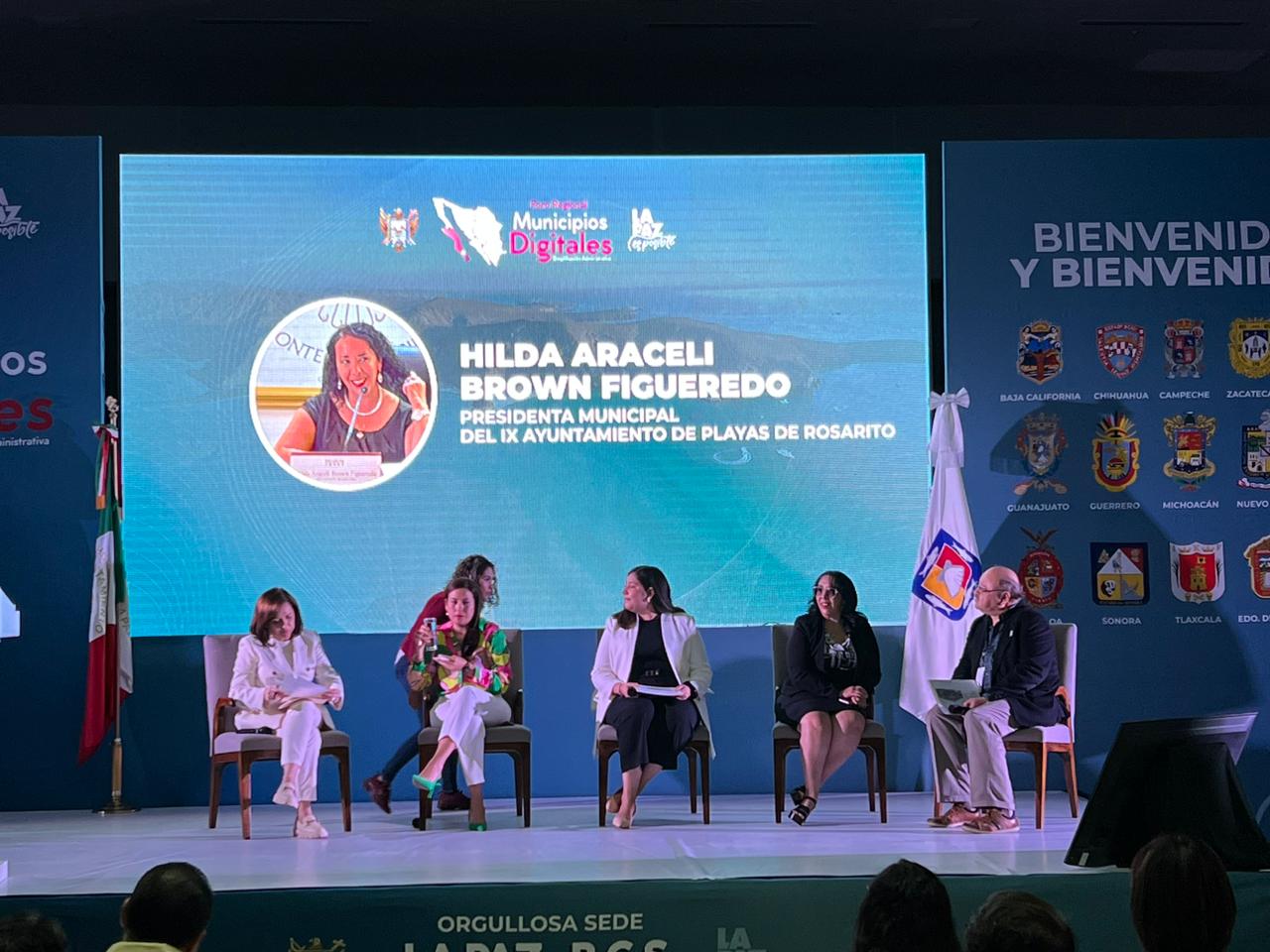 La Paz, B.C.S. sábado 25 de marzo de 2023.- Con la finalidad de difundir los resultados y logros alcanzados en materia de mejora regulatoria en el Gobierno de Rosarito, la presidente municipal, Araceli Brown Figueredo, participa en el Foro Regional Municipios Digitales ‘Simplificación Administrativa’.