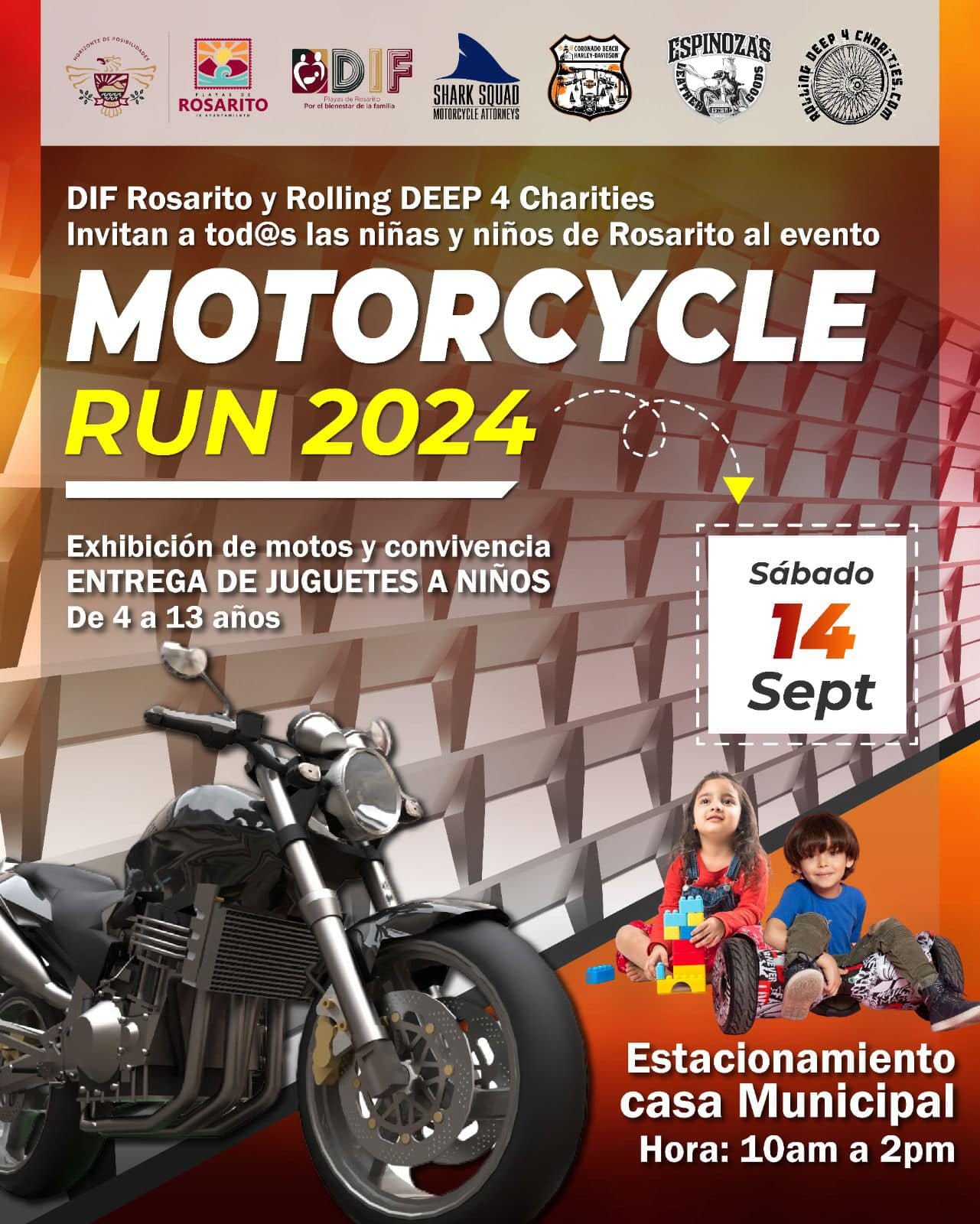 Playas de Rosarito, B.C., 6 de septiembre de 2024.- El Gobierno de la Ciudad que encabeza la presidenta municipal, Alejandra Padilla Orozco a través del Sistema para el Desarrollo Integral de la Familia (DIF) Rosarito invita a toda la comunidad al Motorcycle Run 2024, el próximo sábado 14 de septiembre a partir de las 10:00 horas en la explanada de la Casa Municipal.