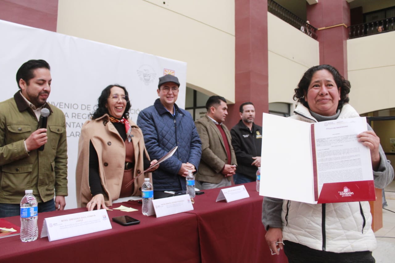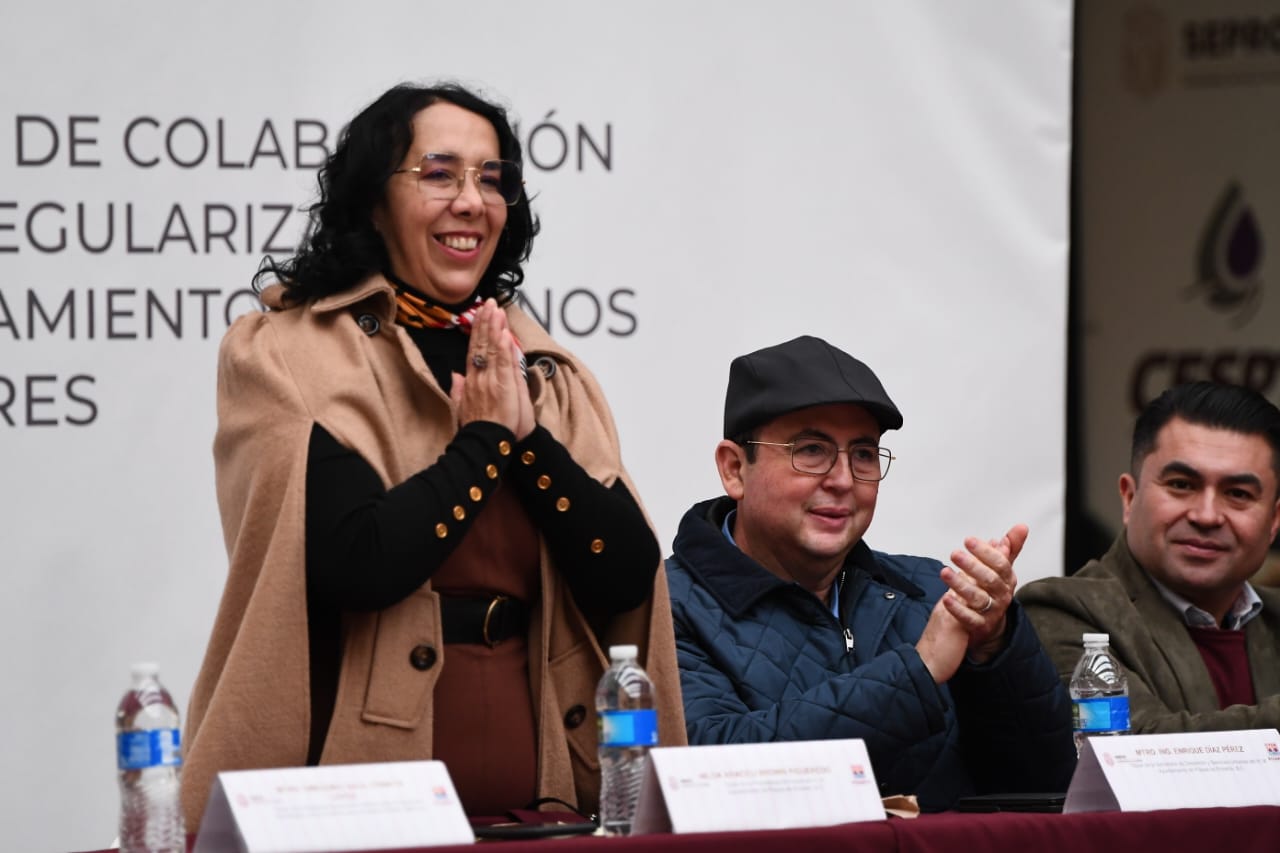 Reiteró, que la jefa de la comuna, firma un precedente porque gracias al convenio de colaboración que se llevó a cabo hace aproximadamente un año y que ningún alcalde había celebrado, cerca de 400 familias se han beneficiado y ya cuentan con su título de propiedad.
