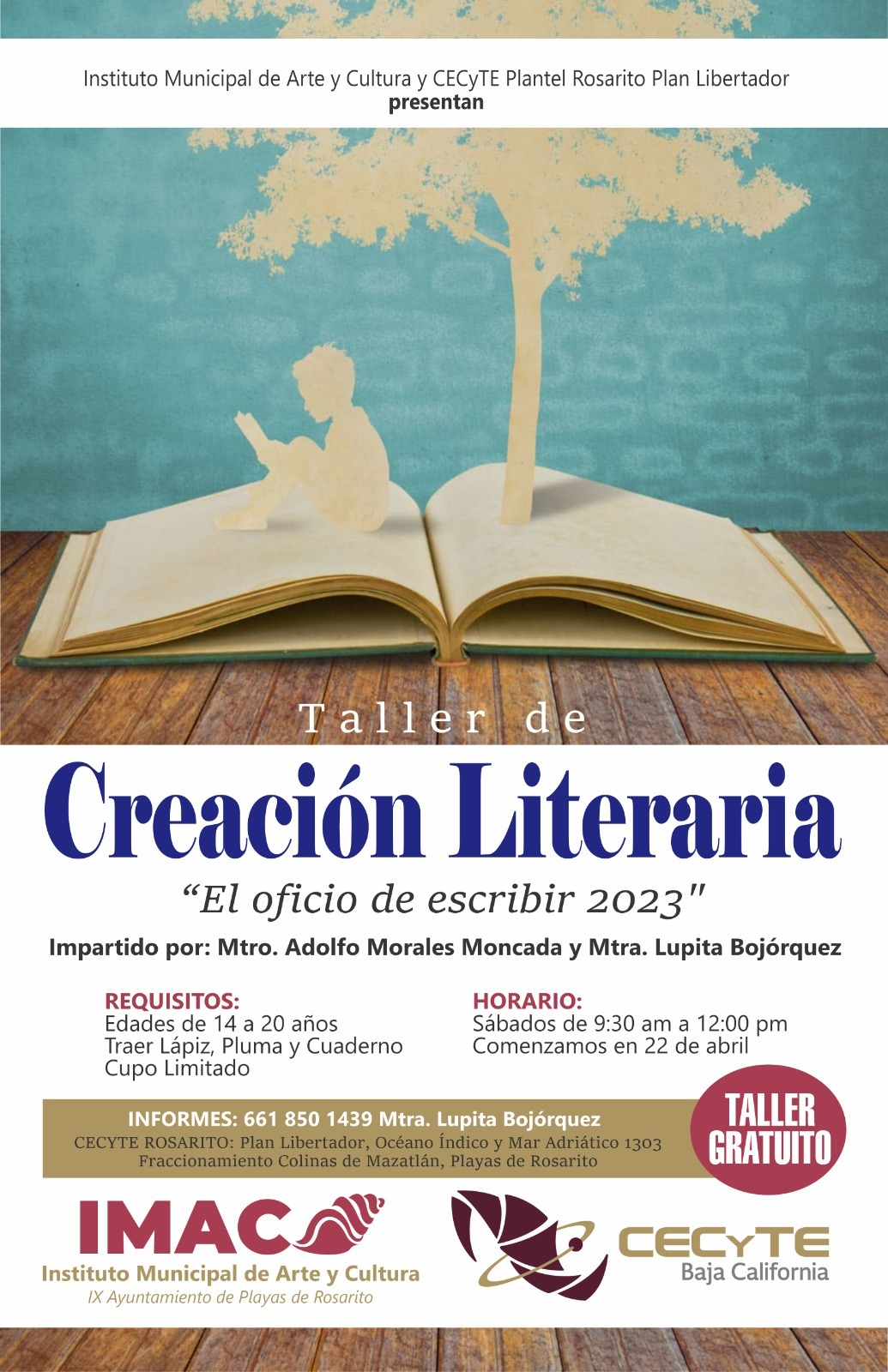 En este sentido, el director del Instituto Municipal de la Juventud (Imjuver), Israel Durán Natera, explicó que en coordinación con el Instituto Municipal del Arte y Cultura (IMAC) y con CecyteBC Plantel Rosarito, se ofrecerá el taller de creación literaria ‘El Oficio de Escribir 2023’, a partir del 22 de abril.