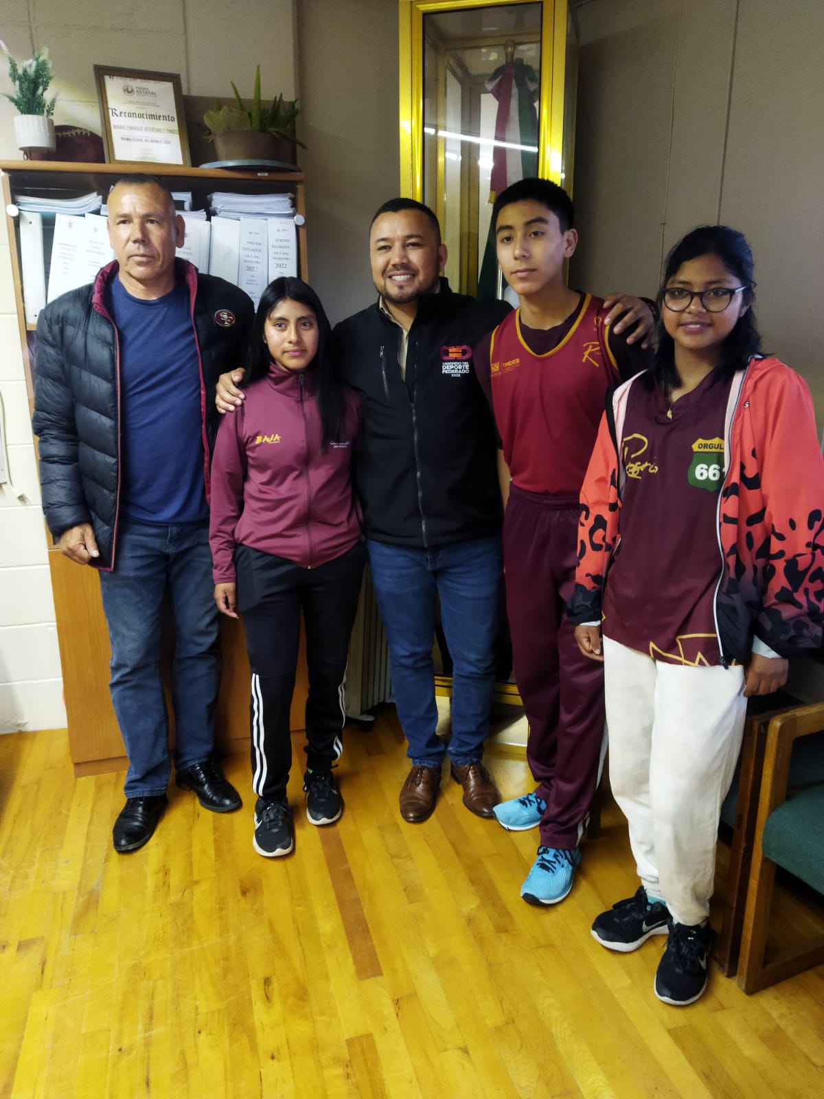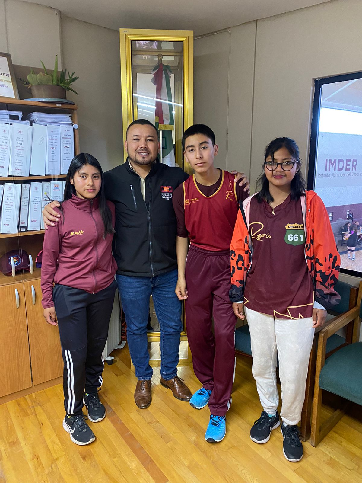 Playas de Rosarito, B.C. 10 de mayo de 2023.- El IX Ayuntamiento de Playas de Rosarito, a través del Instituto Municipal del Deporte (Imder) recibió la visita de los deportistas: Alina Ávila López, de 16 años; Diego Adrián Guzmán Reyes con 17 años; Eleazar Mendoza García de 14 años y Ariana Ávila López con 16 años, talentos que forman parte de la selección de Atletismo de Baja California.