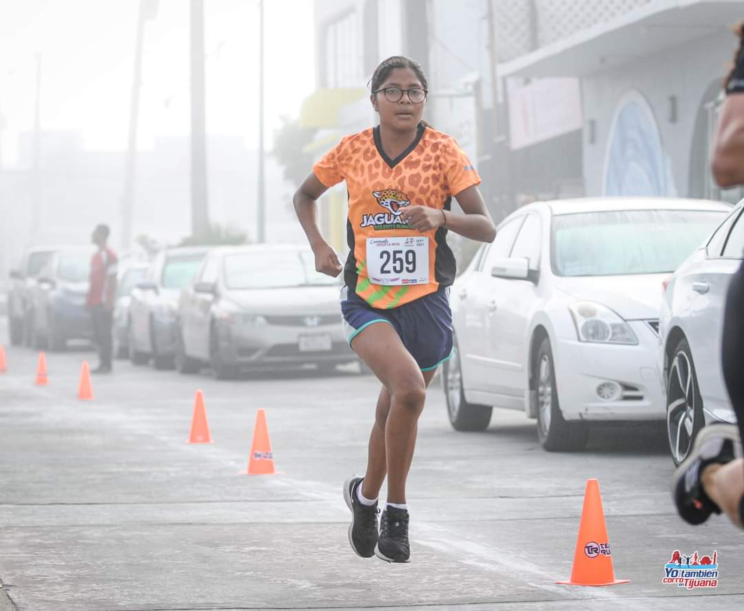 Alina Ávila López con 16 años de edad inició en el atletismo a los 10 años, su padre le ha inculcado el amor al deporte. Alina suele correr cinco kilómetros en las competencias estatales de la Conade.