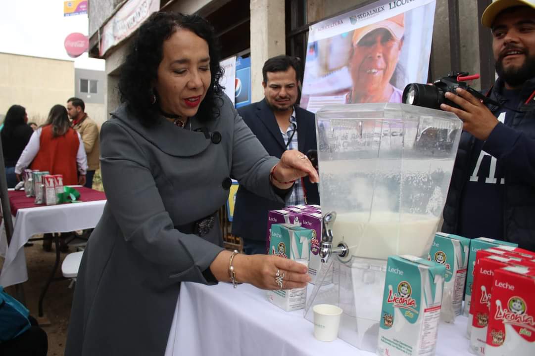 En el evento, la alcaldesa de la ciudad explicó que este jueves se abrieron las puertas de un nuevo punto de venta de abasto social de leche, como parte del programa federal de Seguridad Alimentaria Mexicana (Segalmex), entregando, de manera simbólica, ocho tarjetas a familias de esta localidad.