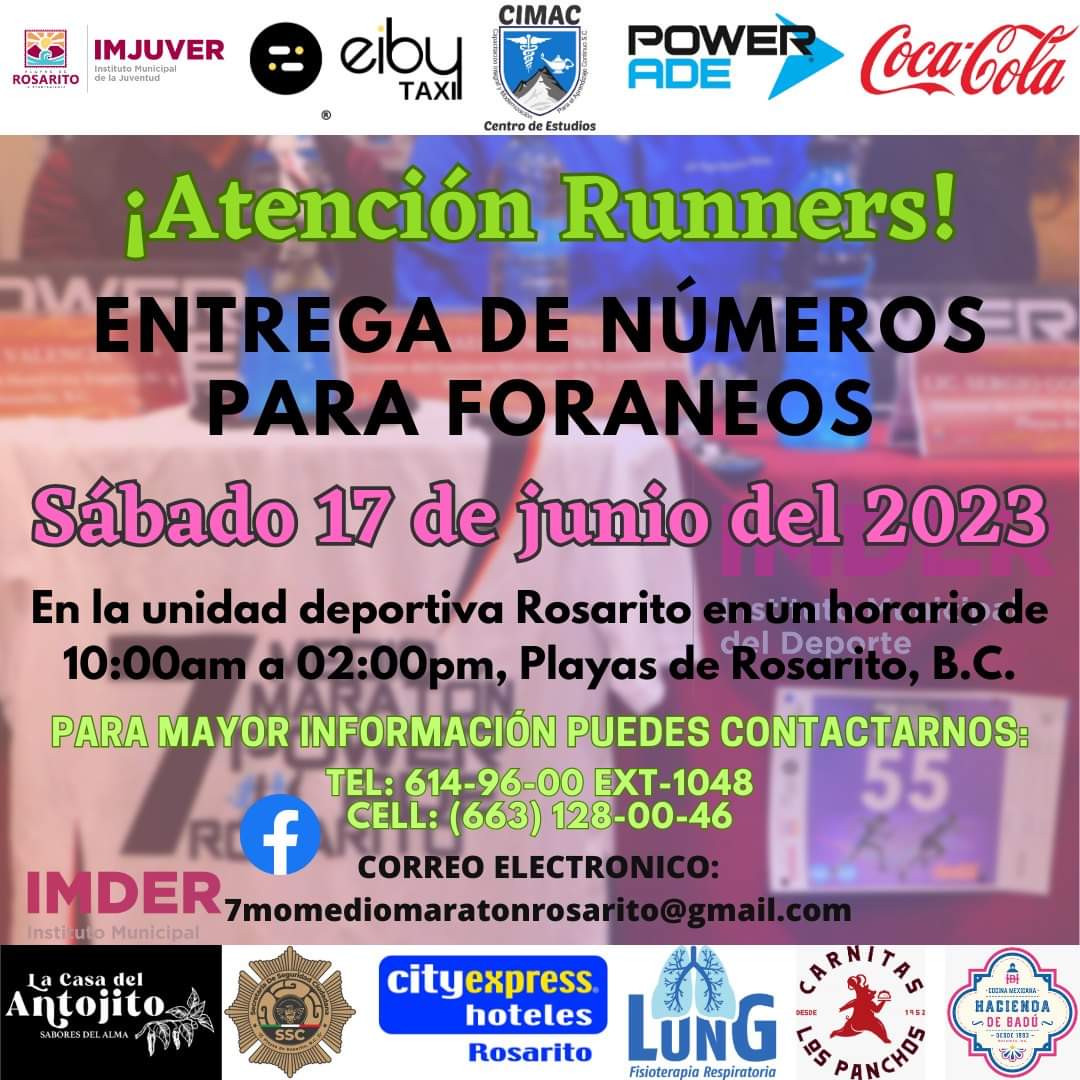 Gutiérrez Tinoco agregó que el Imder y la empresa City Express Rosarito, celebraron un convenio de colaboración para brindar corredores participantes, un descuento en su estancia y disfrutar al máximo su experiencia, los interesados pueden reservar accediendo al siguiente enlace y seguir indicaciones: https://www.cityexpress.com/.../baja.../rosarito/rosarito o llamar al (661) 119 9418.