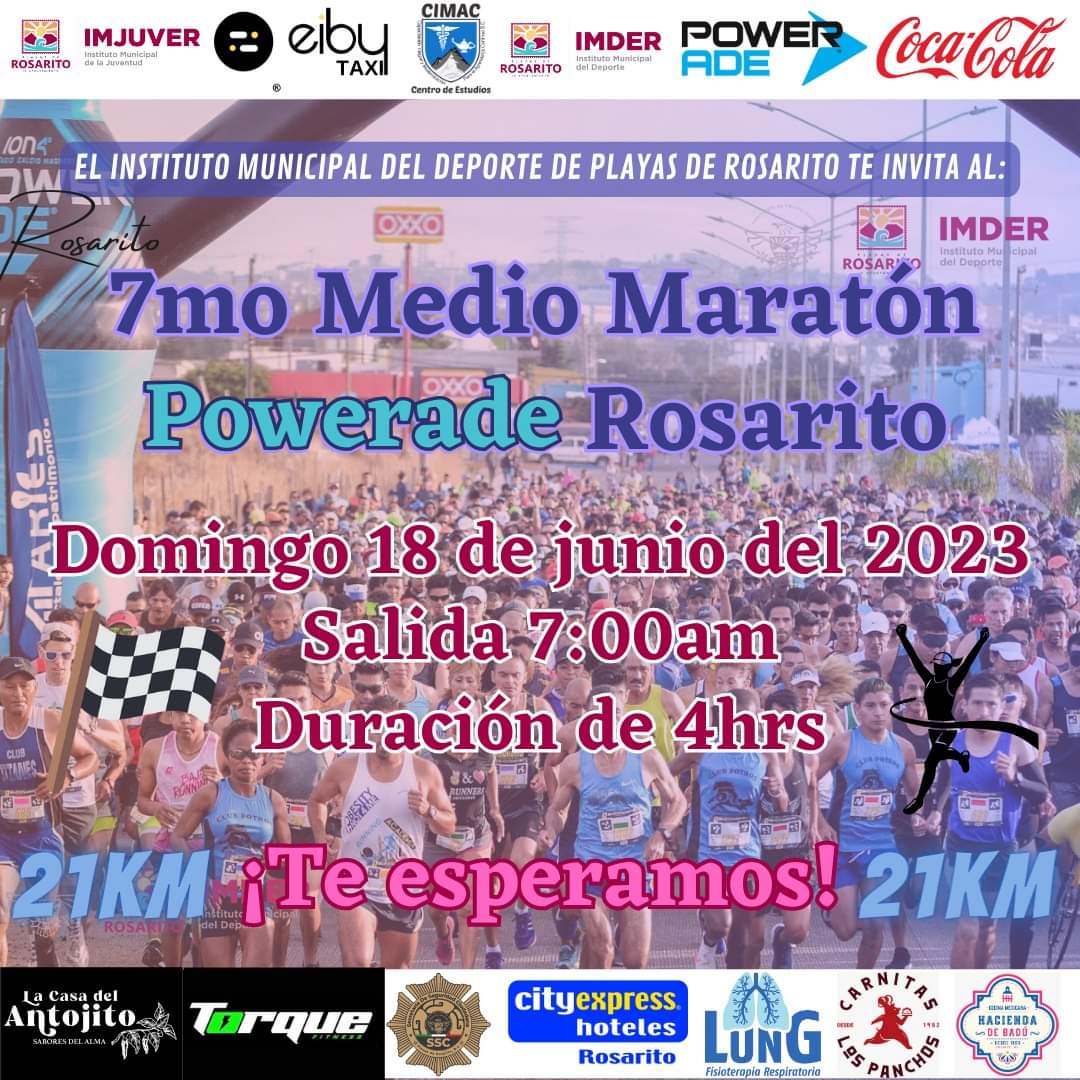 Playas de Rosarito, B.C. 14 de junio de 2023.- El Gobierno Municipal anunció que se encuentra listo para el ‘7mo. Medio Maratón Powerade Rosarito, 21K Edición Internacional 2023’, que se llevará a cabo el próximo domingo 18 de junio a partir de las 7:00 horas y tendrá como salida y meta las instalaciones del Centro Comercial Plaza Pabellón, tal como lo ha instruido la alcaldesa, Araceli Brown Figueredo.