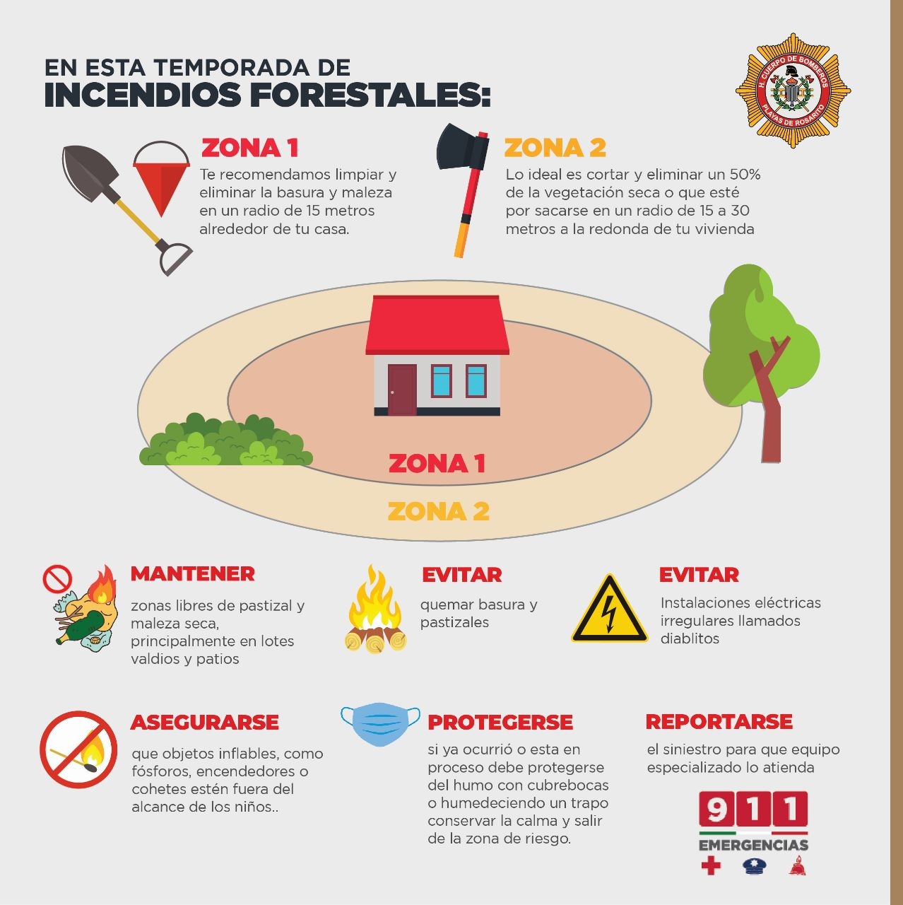 García Ames explicó que los incendios forestales ocurren cuando el fuego se extiende de manera descontrolada en valles, zonas con vegetación o predios baldíos y la escasez de agua en la ciudad, en un factor primoridal para que se susciten y ante una situación de emergencia, se insiste en reportarla de inmediato a la aplicación digital SOS_RR o a la línea 9-1-1.