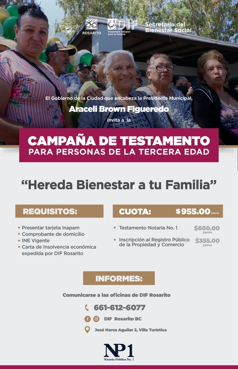Invita DIF Rosarito a aprovechar beneficios de la campaña de testamento para personas de la tercera edad 'Hereda Bienestar a tu familia'