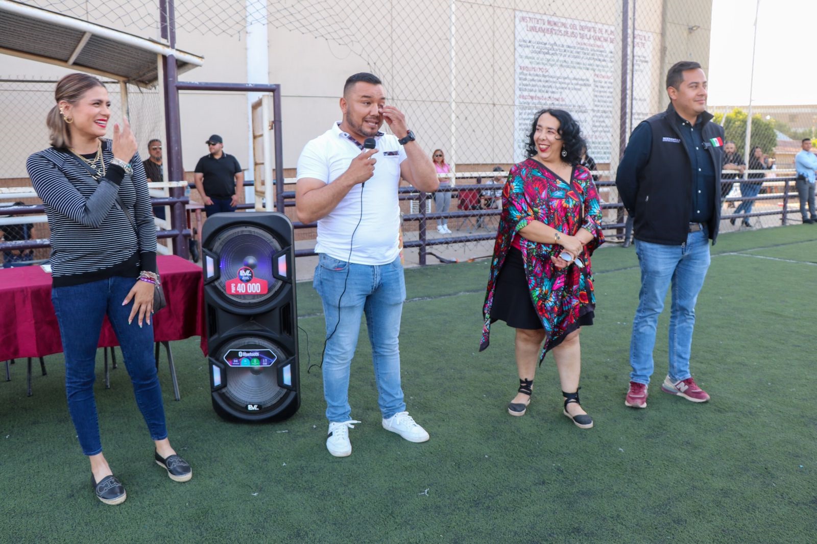 “Estoy muy contenta de compartir con las niñas y niños que practican el fútbol rápido porque trabajaremos en las mejoras del espacio para estar en condiciones óptimas, que los deportistas puedan jugar con tranquilidad y desarrollen esta disciplina de manera más segura”, dijo la presidente municipal.