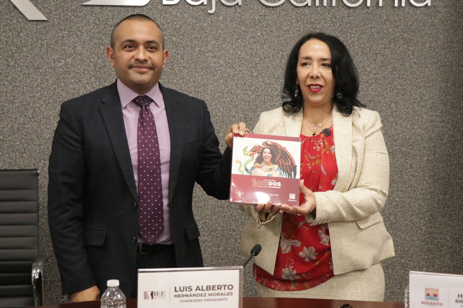 Mexicali, B.C.; 11 de octubre de 2023.- La presidente municipal, Araceli Brown Figueredo, entregó a las autoridades del Instituto Estatal Electoral (IEE), los resultados obtenidos en su segundo año de gobierno al frente de IX Ayuntamiento de Playas de Rosarito.