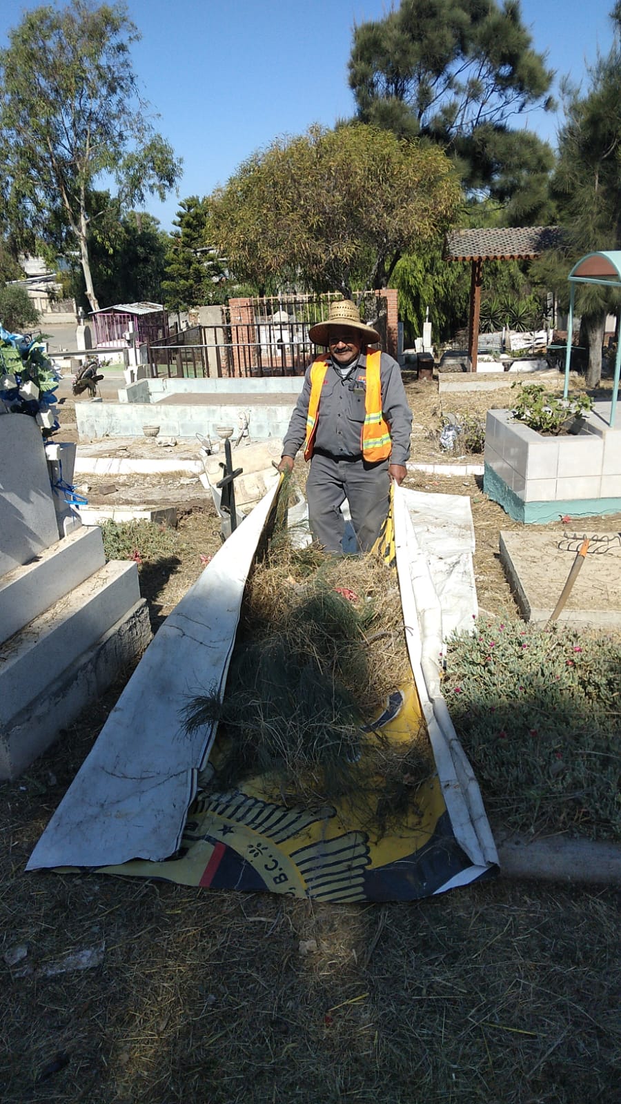 Playas de Rosarito, B.C. 25 de octubre de 2023. Previo al Día de Muertos, cuadrillas de la Secretaría de Desarrollo y Servicios Urbanos (SDSU) continúan con las labores de limpieza en el Panteón Municipal Ejido Mazatlán, ante la espera de más de tres mil visitantes en la próxima semana, tal como lo instruyó la alcaldesa Araceli Brown Figueredo.