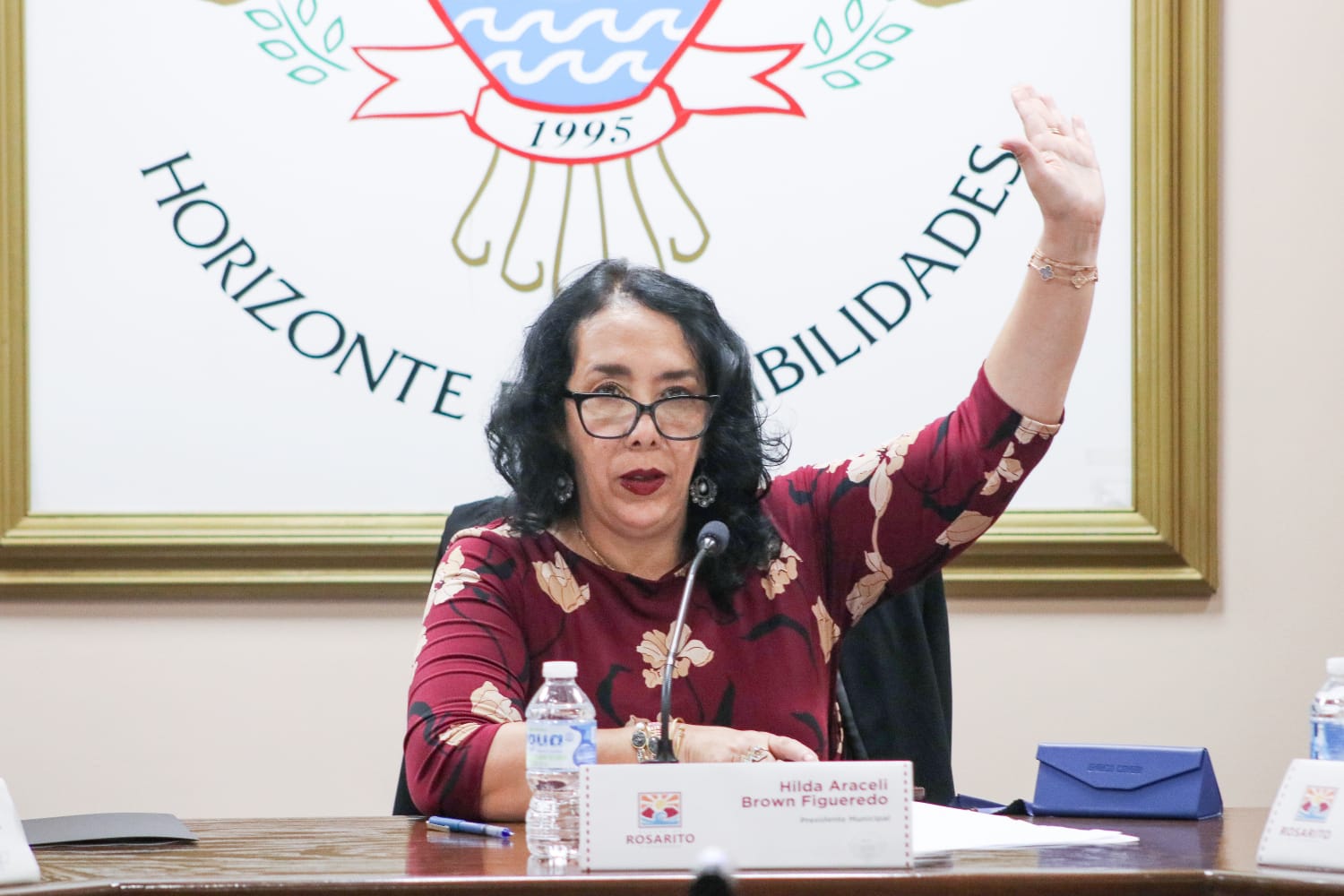 Playas de Rosarito, B.C. 26 de octubre de 2023. En Sesión Ordinaria, el Cabildo de la Ciudad, aprobó de manera unánime, la iniciativa de toma de muestras a las y los servidores públicos de la administración pública municipal para la detección del uso o abuso de drogas, como una de las prioridades de la alcaldesa, Araceli Brown Figueredo.