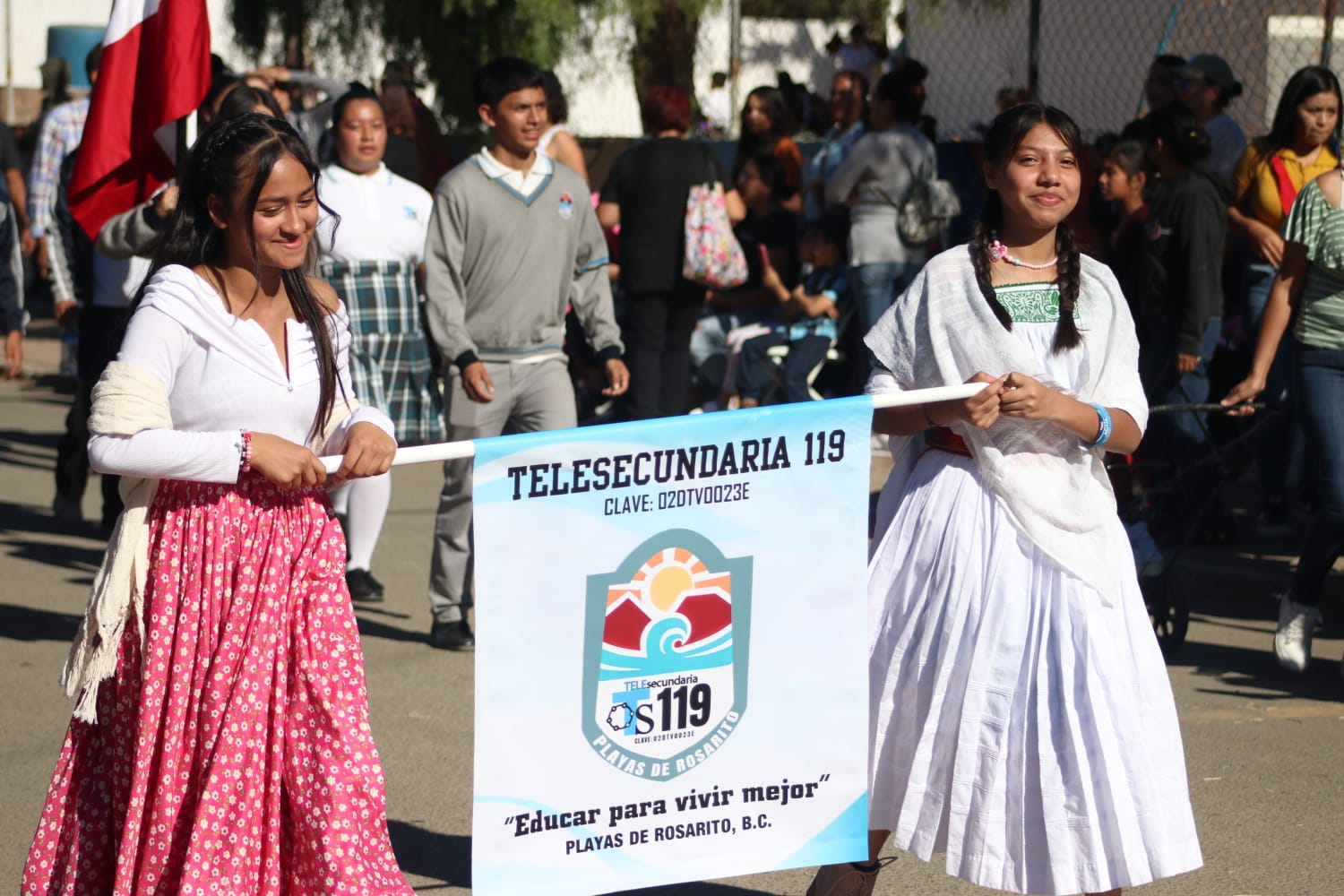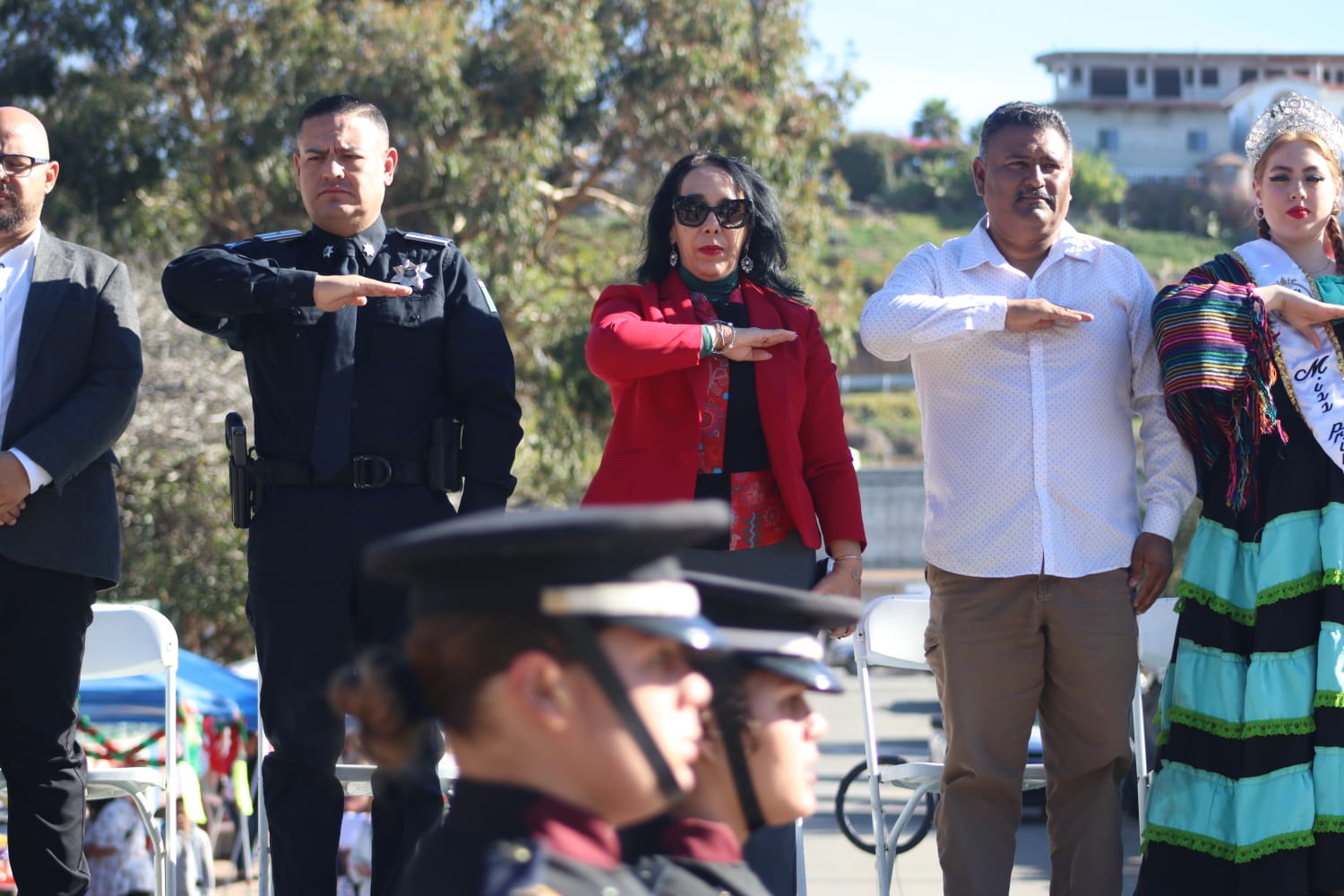 Playas de Rosarito, 22 de noviembre de 2023. Con una asistencia cercana a las mil personas, se llevó a cabo el tradicional desfile cívico deportivo en conmemoración del 113 Aniversario del Inicio de la Revolución Mexicana, que fue encabezado por la presidente municipal, Araceli Brown Figueredo, en la Delegación Primo Tapia.