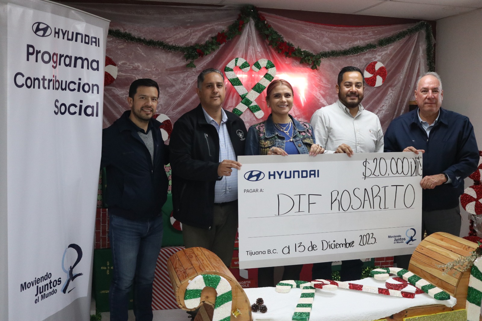 Playas de Rosarito, 13 de diciembre de 2023.- En un acto de compromiso social y solidaridad, la prestigiosa empresa Hyundai de México, realizó un significativo donativo por el orden de los 20 mil dólares al Sistema para el Desarrollo Integral de la Familia (DIF) Municipal Rosarito, para los programas sociales que maneja la institución en favor de la niñez.